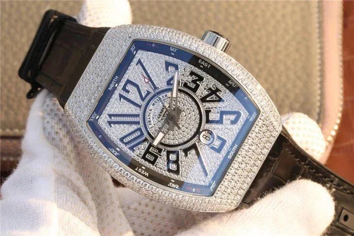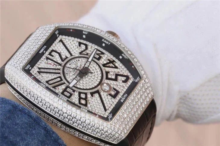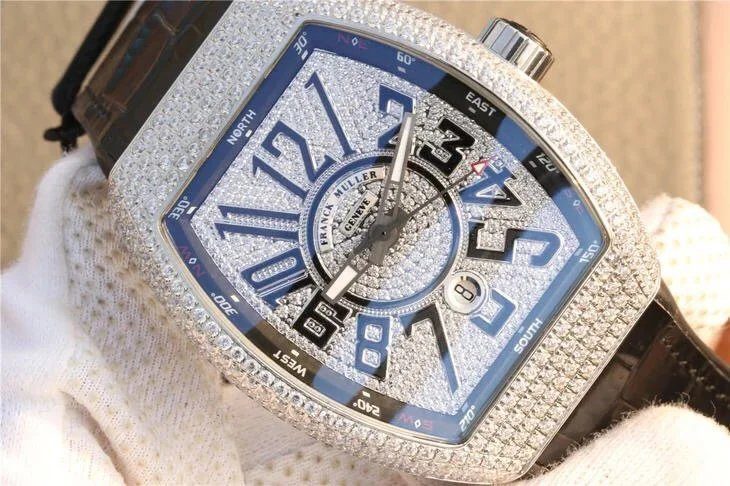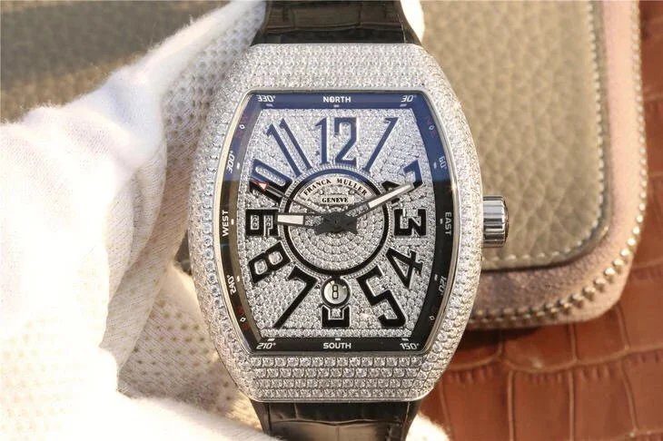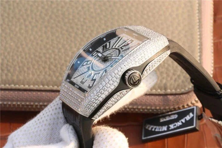 FRANCK MULLER VANGUARD V45 STEEL FULL STONE SUPER FAKE WATCH ABF 45MM