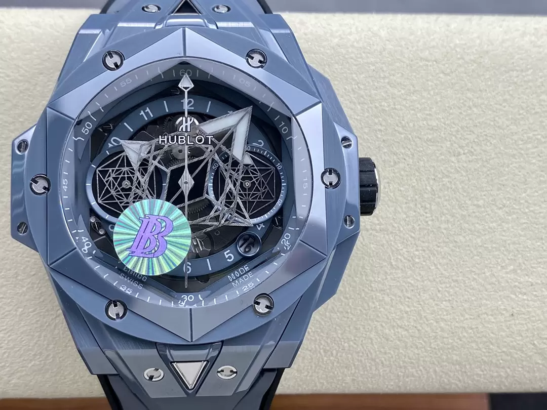HUBLOT BIG BANG SANG BLEU REPLICA WATCHES GREY CERAMIC RUBBER STRAP 45MM