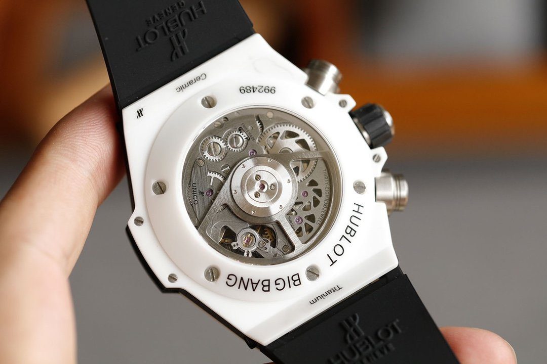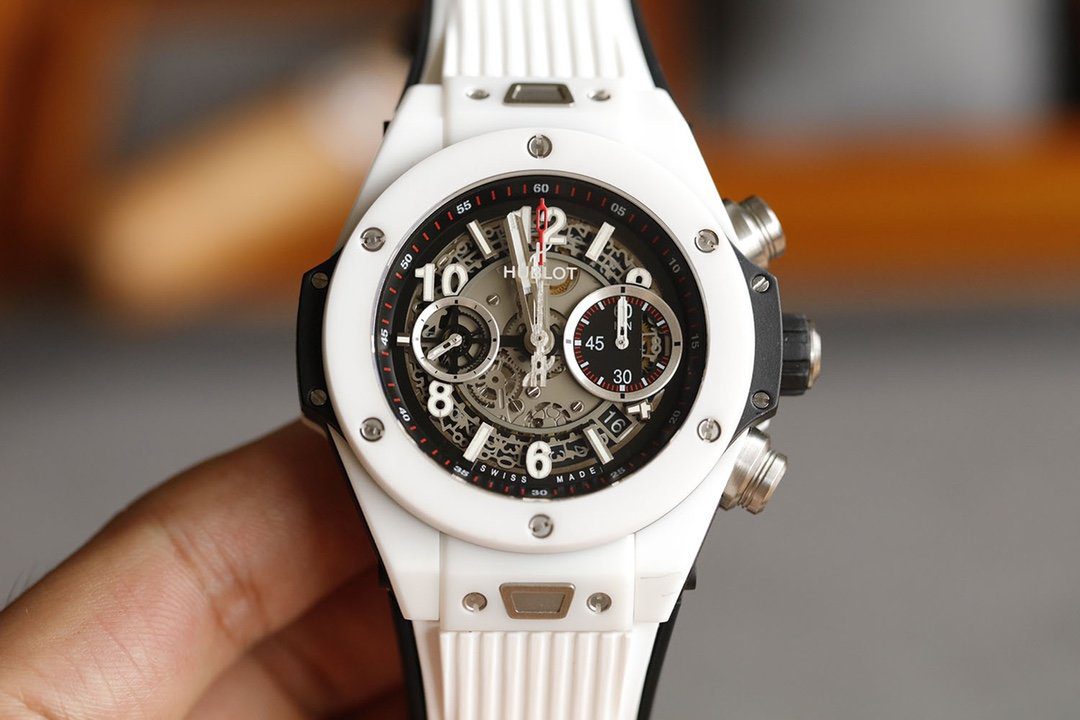 HUBLOT BIG BANG UNICO CHRONOGRAPH BEST REPLICA WATCHES WHITE CERAMIC RUBBER STRAP ONE CLICK 45,5MM