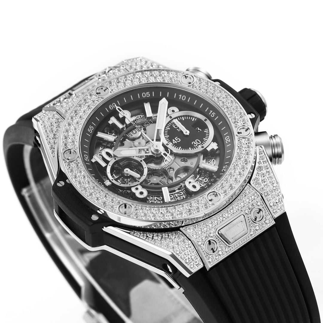 HUBLOT BIG BANG UNICO GOOD IMITATION WATCHES RHINESTONE FULL CASE RUBBER STRAP CHRONOGRAPH 45MM