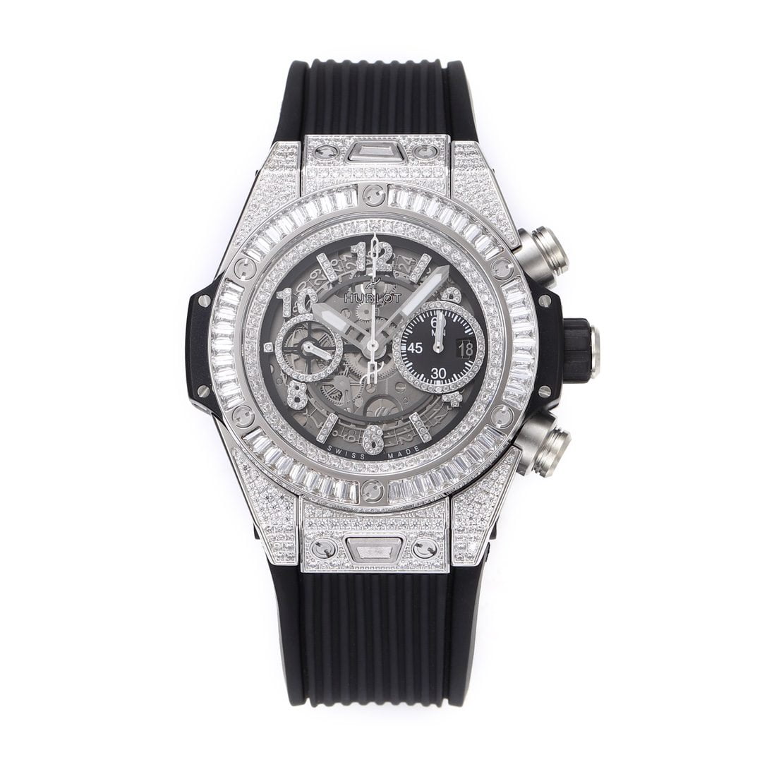 HUBLOT BIG BANG UNICO HIGH END REPLICA WATCHES RHINESTONE BAGUETTE BEZEL AND GEM CASE RUBBER STRAP 45MM