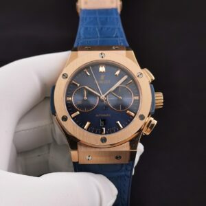 Đặt mua HUBLOT CLASSIC FUSION CHRONOGRAPH KING GOLD HIGH END IMITATION WATCHES BLUE DIAL RUBBER STRAP ROSE GOLD PLATE 45MM