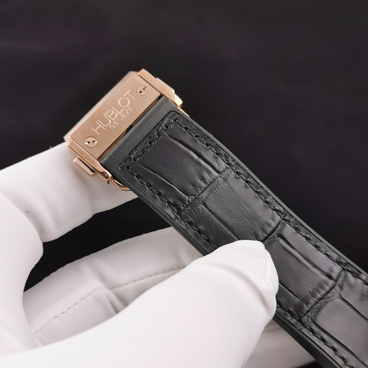 HUBLOT CLASSIC FUSION CHRONOGRAPH KING GOLD REPLCIA WATCHES RHINESTONE FULL GEM BLACK RUBBER STRAP 45MM