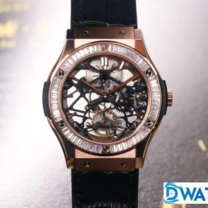 Đặt mua HUBLOT CLASSIC FUSION TOURBILON HIGH END WATCHES REPLICAS RHINESTONE BAGUETTE BEZEL ROSE GOLD PLATE 42MM