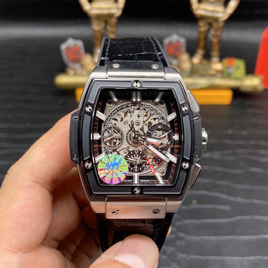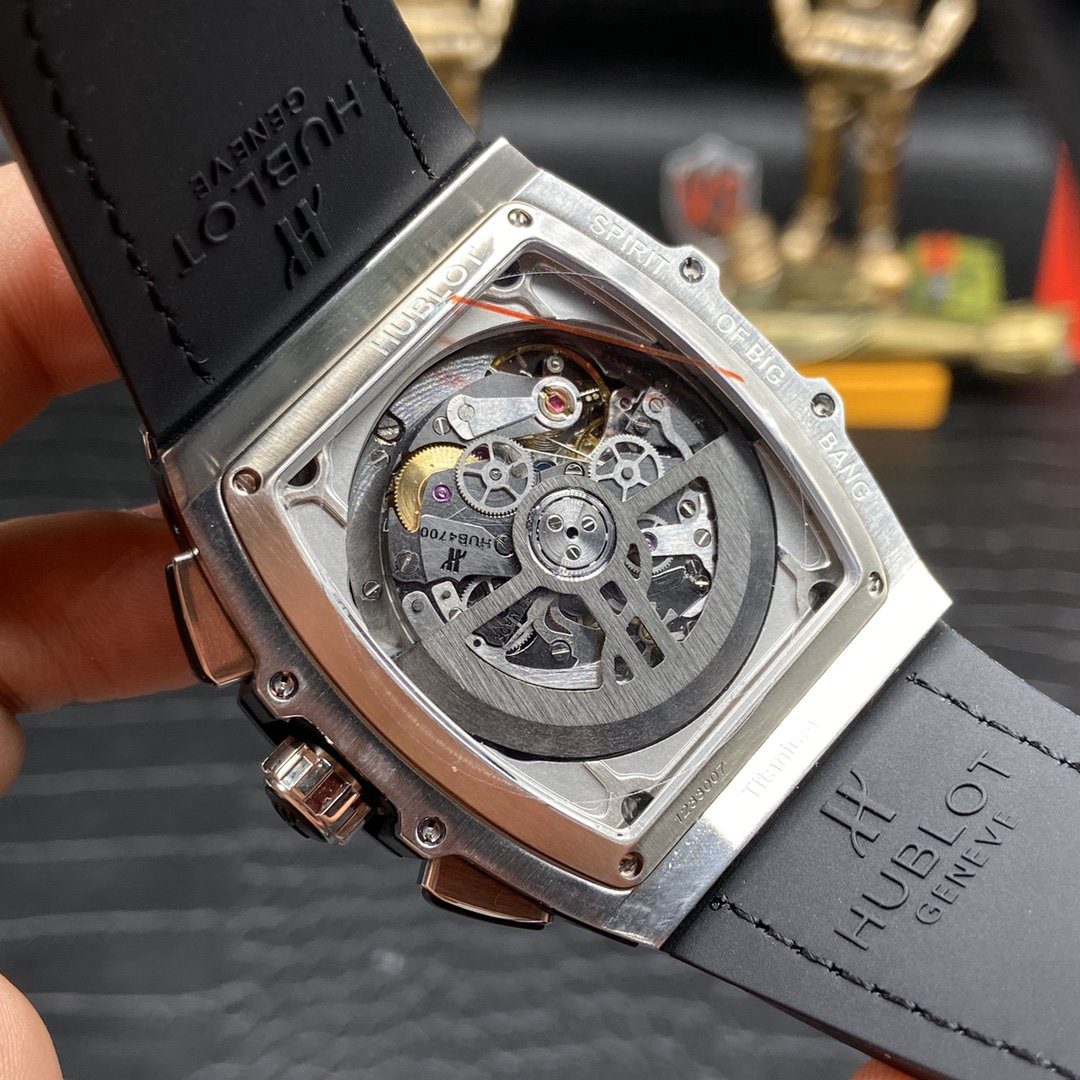 HUBLOT SPIRIT OF BIG BANG CHRONOGRAPH KNOCK OFF WATCHES BLACK DIAL TITANIUM CASE RUBBER STRAP 42MM