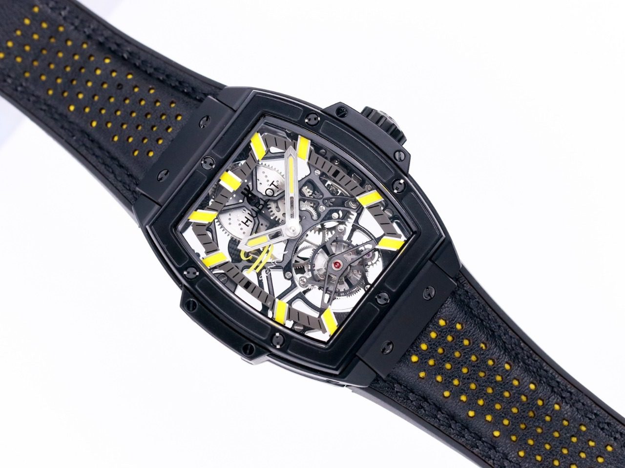 HUBLOT SPIRIT OF BIG BANG TOURBILON BEST REPLICA WATCHES ALL BLACK YELLOW HOURS 45MM