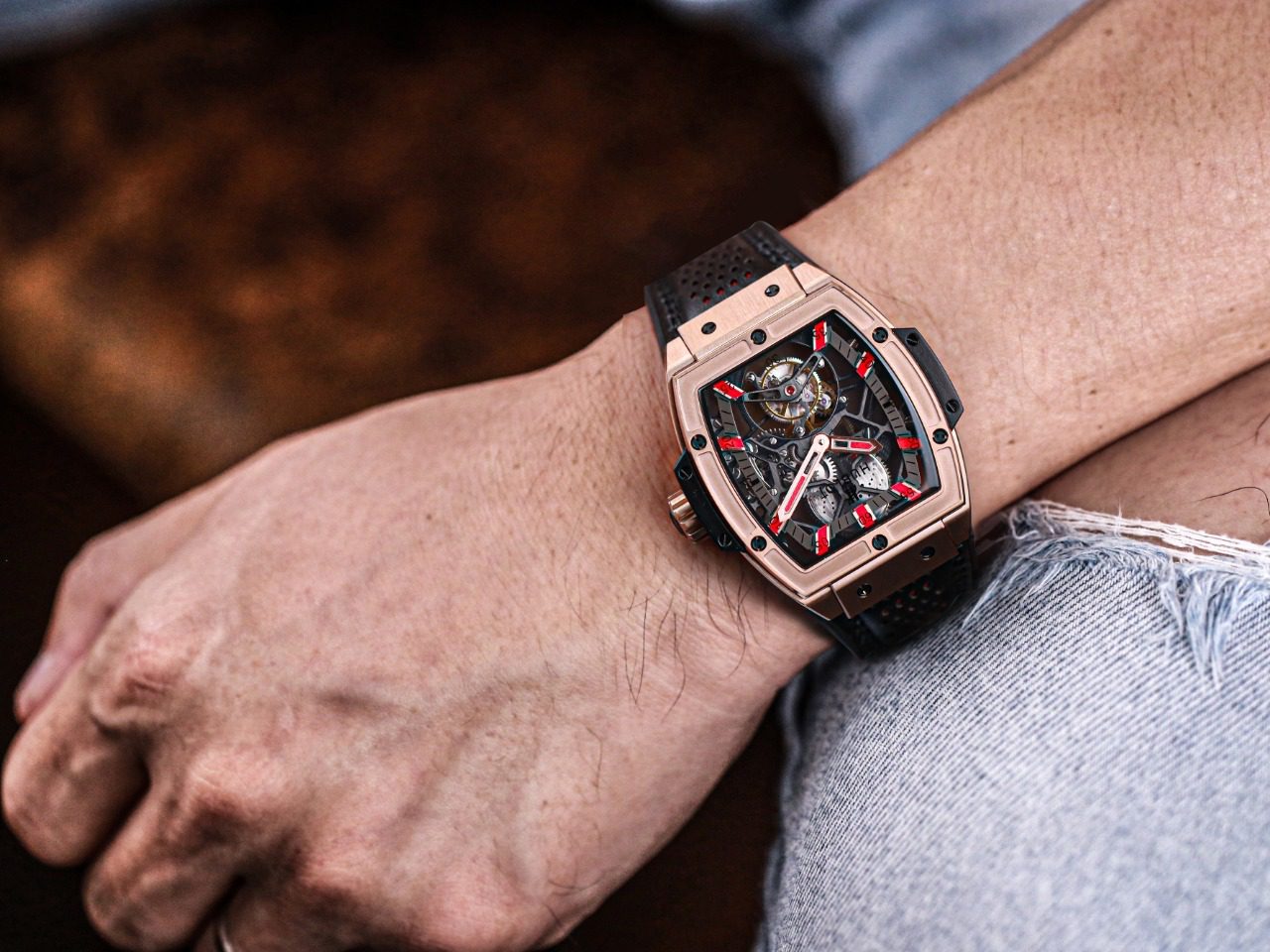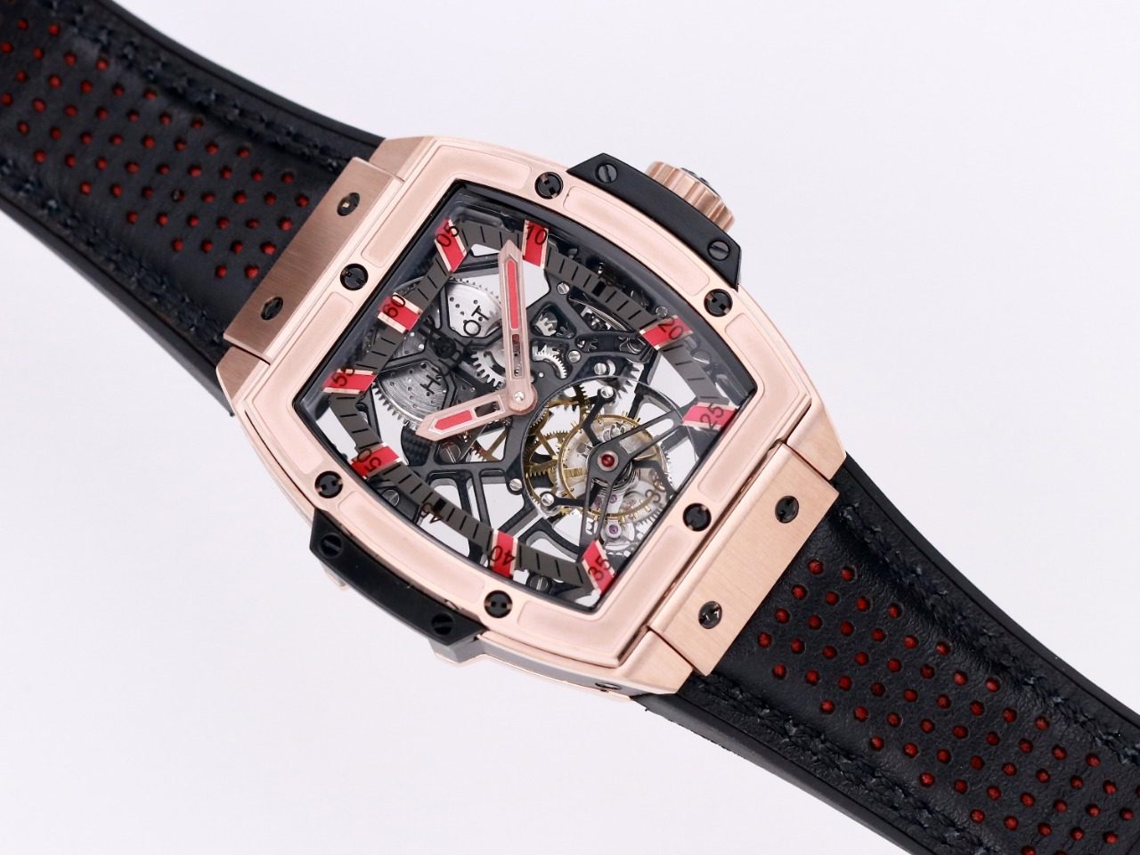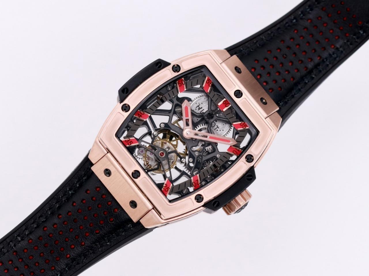 HUBLOT SPIRIT OF BIG BANG TOURBILON KING GOLD IMITATION WATCHES RED HOURS ROSE GOLD PLATE 45MM