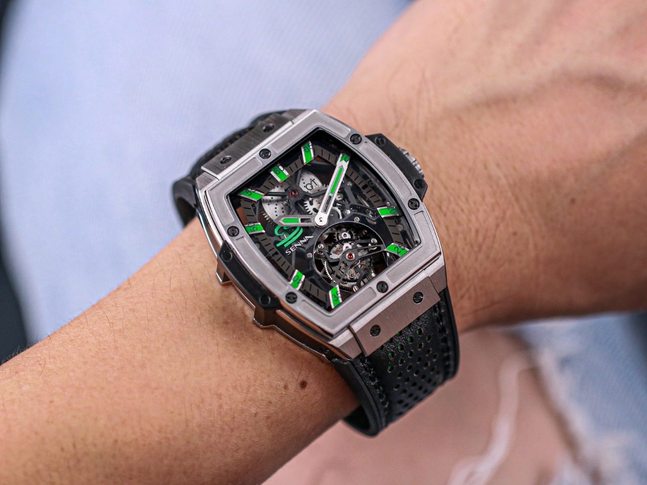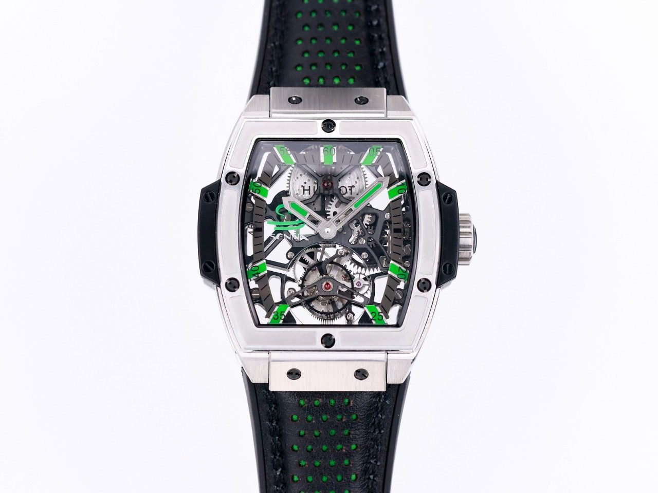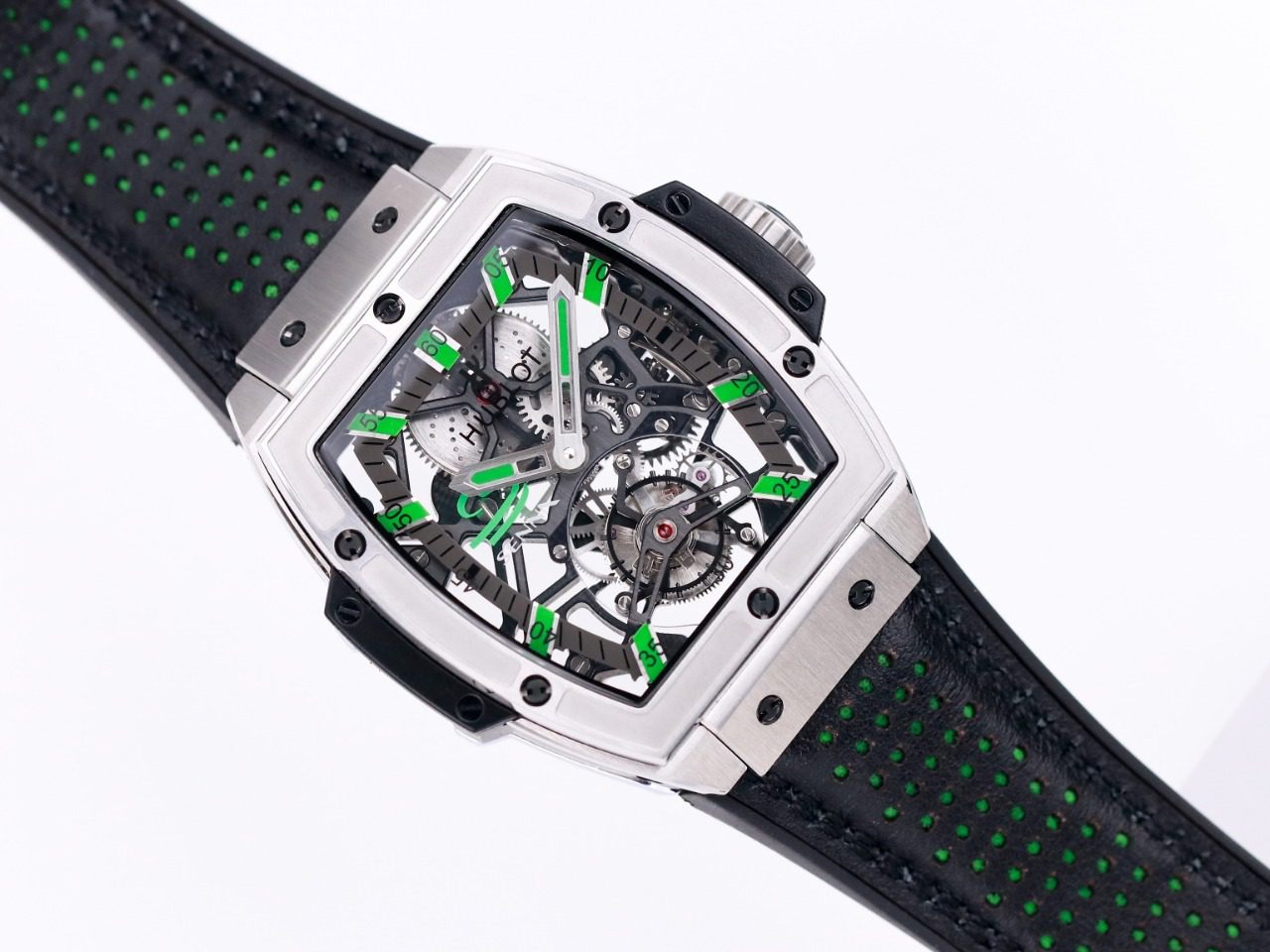 HUBLOT SPIRIT OF BIG BANG TOURBILON KNOCK OFF WATCHES GREEN HOURS TITANIUM CASE 45MM