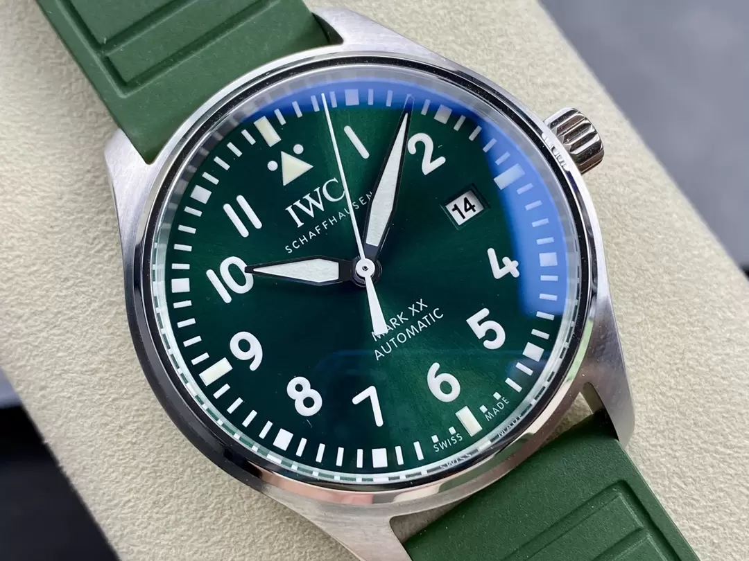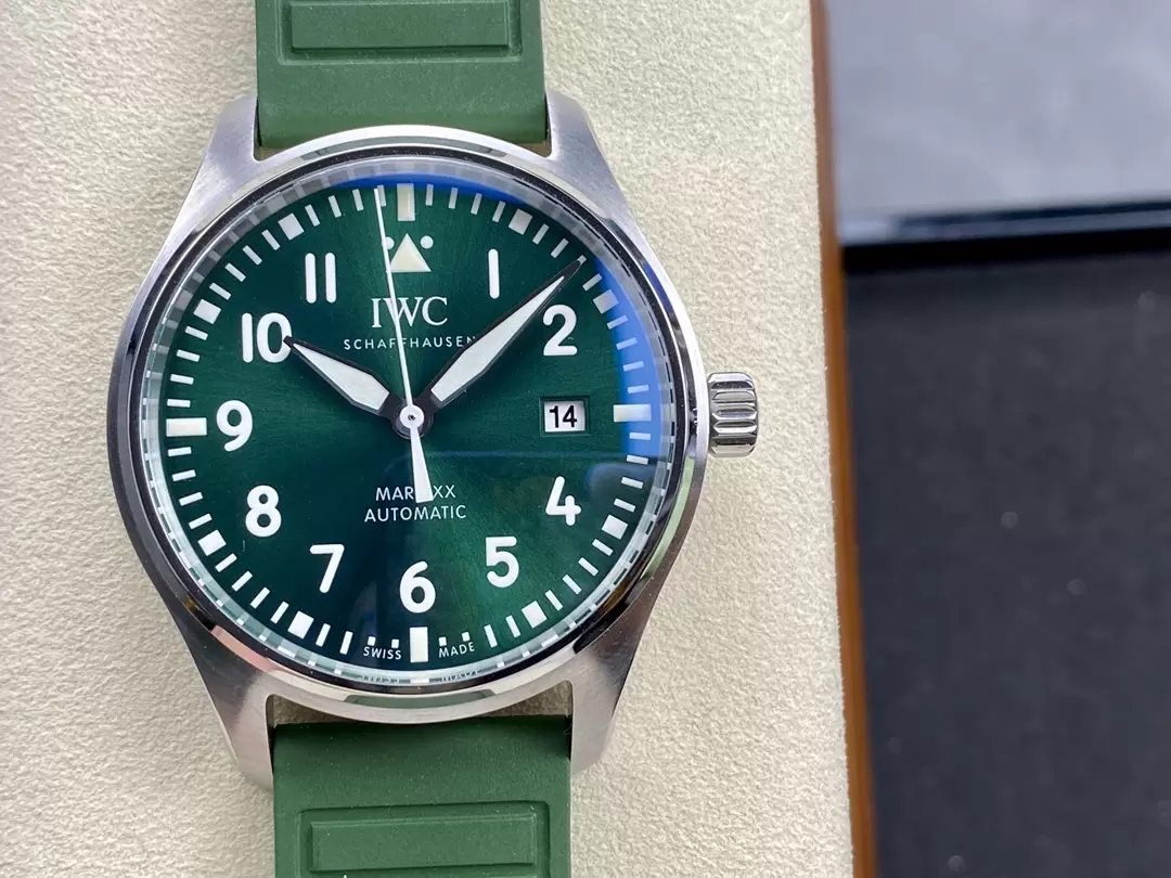IWC PILOT’S IW328205 GREEN RUBBER STRAP FAKE WATCH M+ FACTORY 40MM