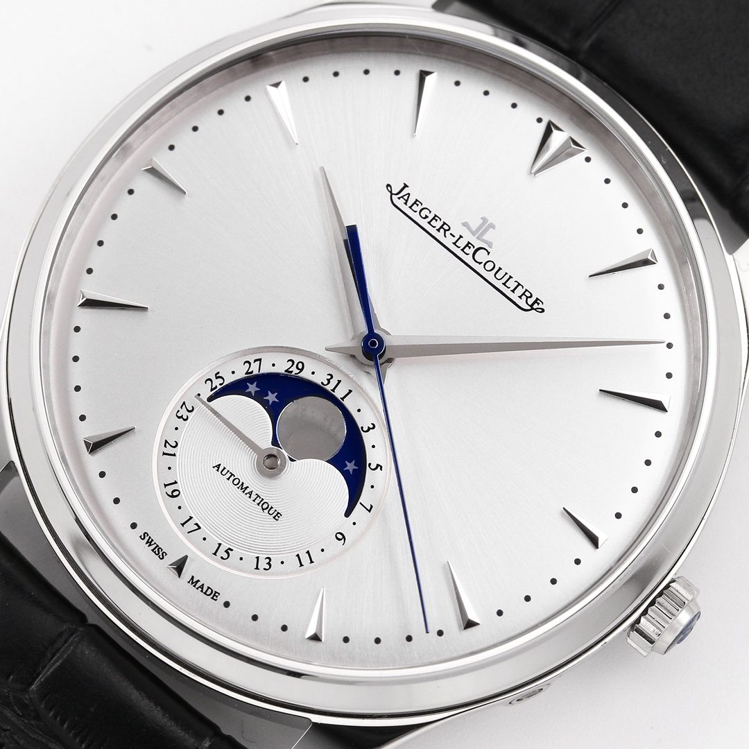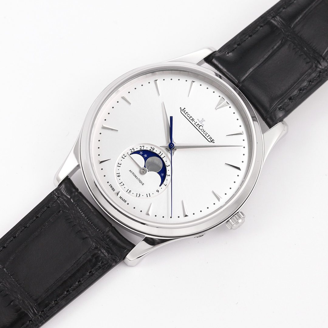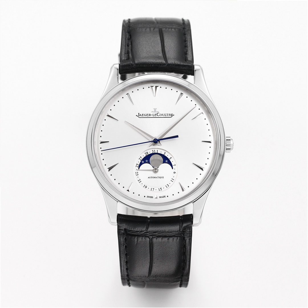 JAEGER-LECOULTRE MOON PHASE REPLICA WATCH BLACK LEATHER STRAP GF 39MM