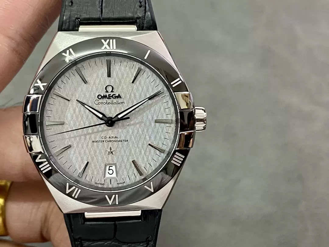 OMEGA CONSTELLATION LUXURY IMITATION WATCHES BLACK BEZEL LEATHER STRAP WHITE DIAL SBF FACTORY 41MM