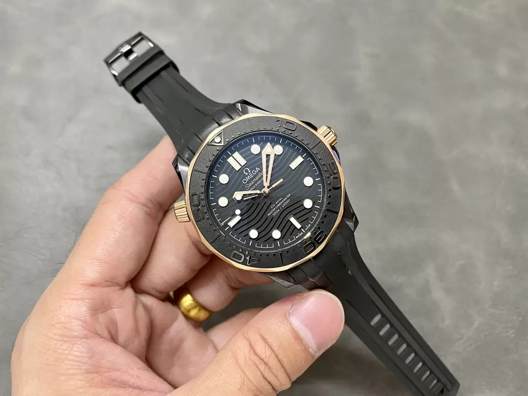 OMEGA SEAMASTER HIGH END WATCHES REPLICAS ALL BLACK GOLD BLACK CERAMIC BEZEL VS FACTORY 43MM