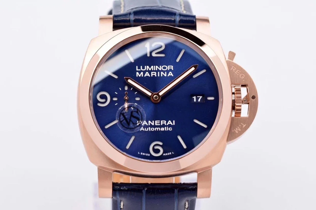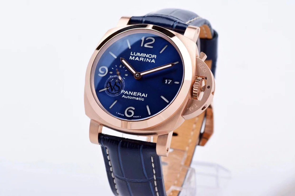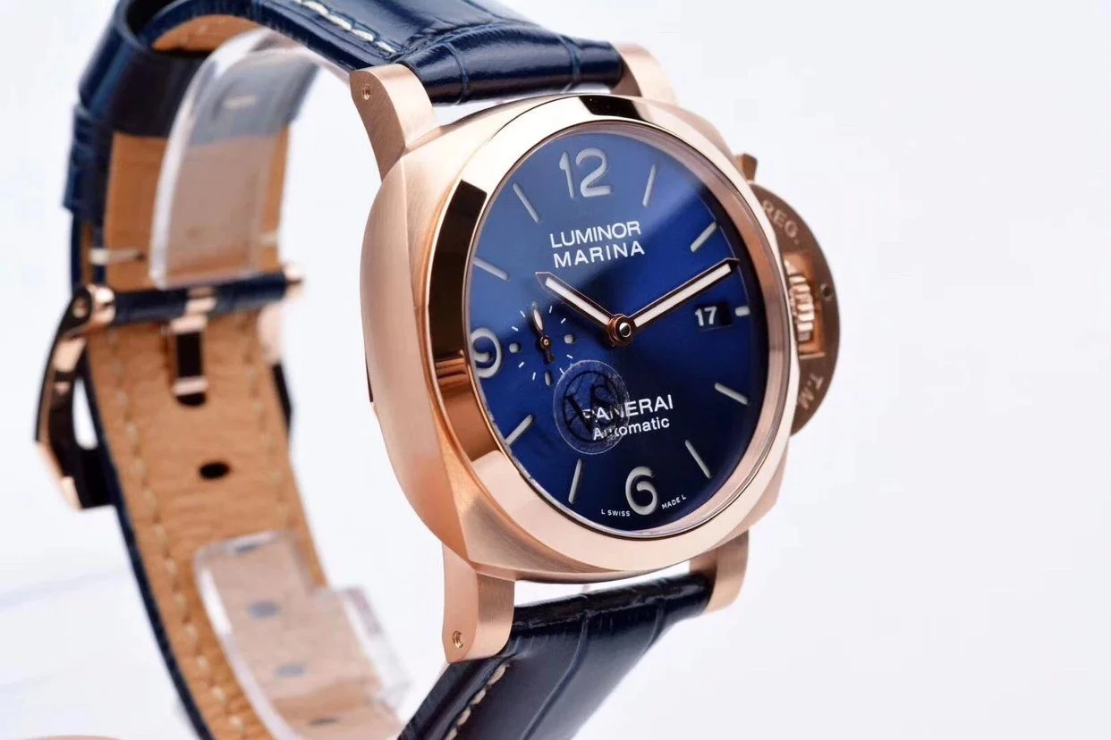 PANERAI LUMINOR REPLICA ROSE GOLD WATCHES SAUCY BLUE VS FACTORY 44MM