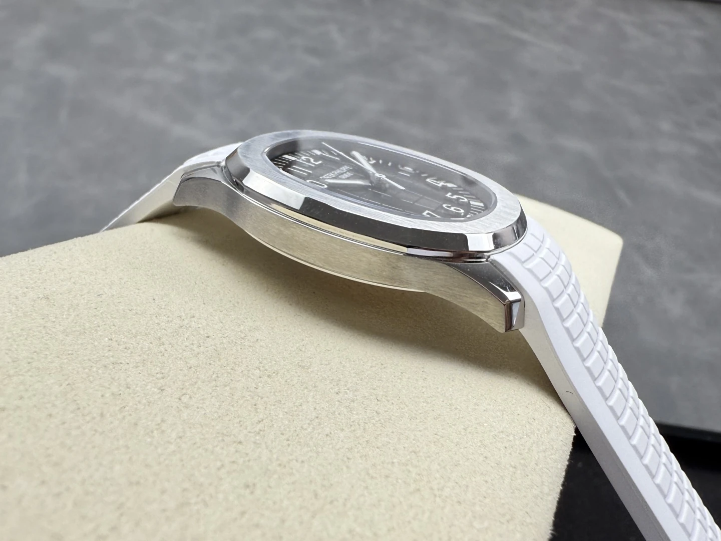 PATEK PHILIPPE AQUANAUT 5167 KNOCK OFF WATCHES CUSTOM GREY DIAL WHITE RUBBER STRAP AUTOMATIC 40MM