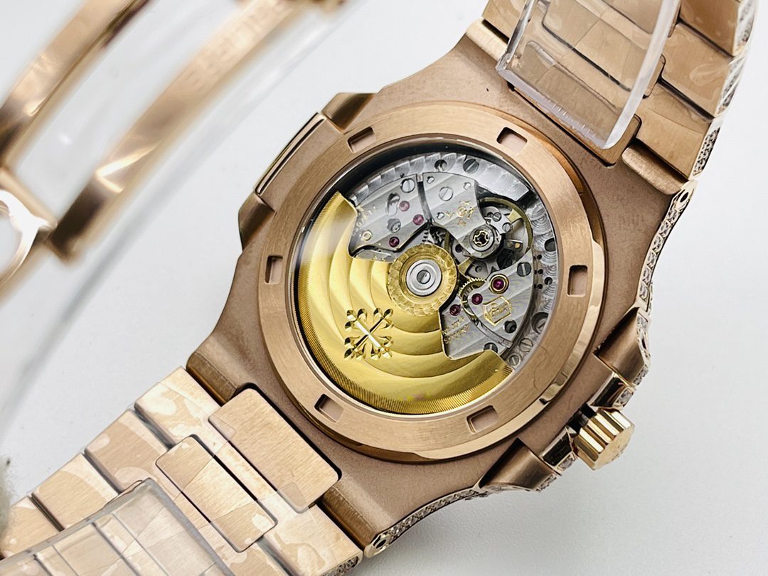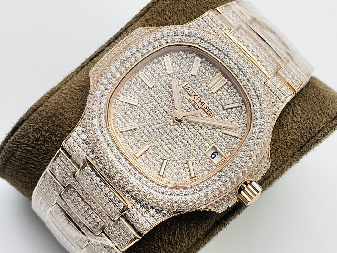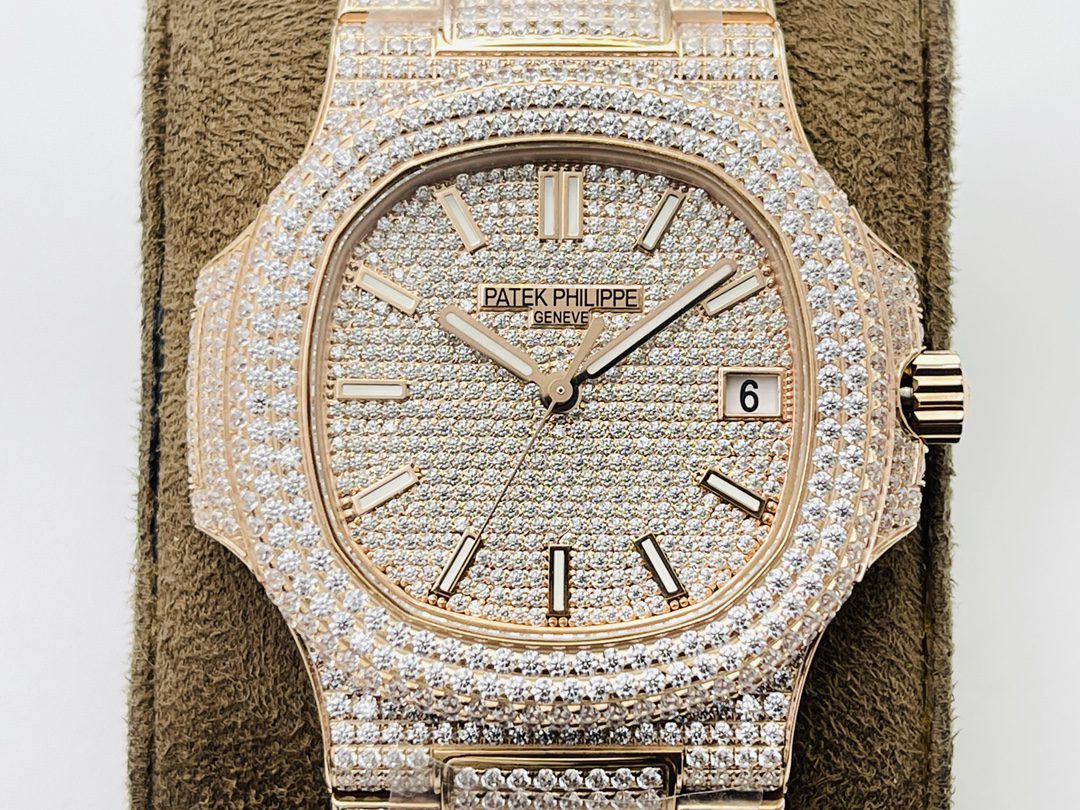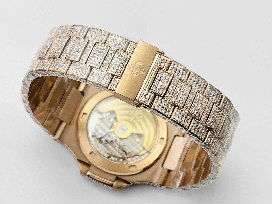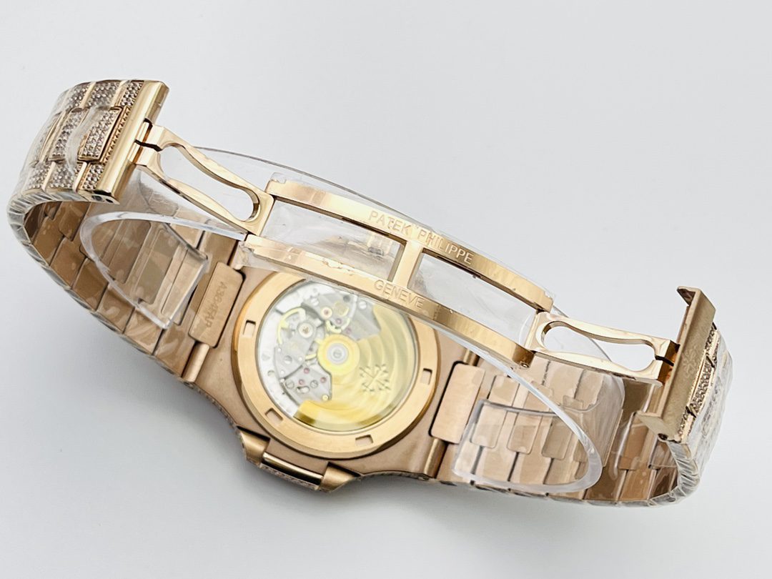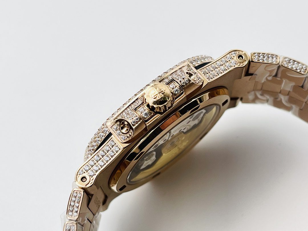 PATEK PHILIPPE NAUTILUS 5711 BEST COPIES WATCHES ROSE GOLD RHINESTONE FULL GEM R8 FACTORY 40MM