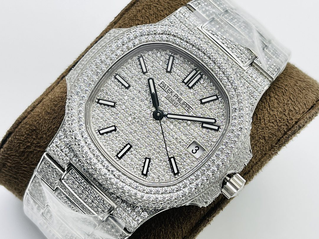 PATEK PHILIPPE NAUTILUS 5711 BEST REPLICA WATCHES RHINESTONE FULL GEM R8 FACTORY 40MM