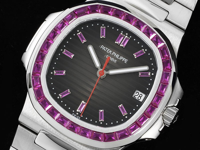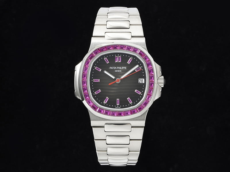 PATEK PHILIPPE NAUTILUS 5711 BLACK DIAL RHINESTONE PINK RUBY GEM REPLICA 40MM