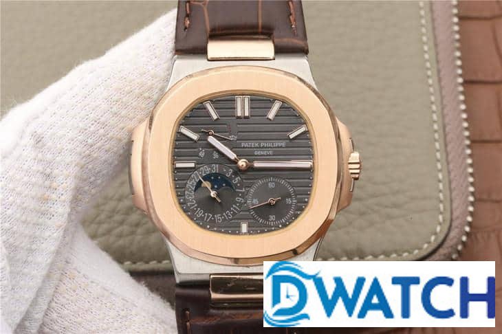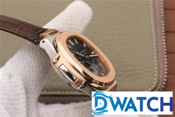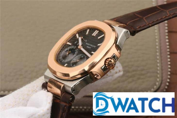 PATEK PHILIPPE NAUTILUS 5712 COPIES WATCHES ROSE GOLD CASE BROWN LEATHER STRAP BLACK DIAL PF 40MM