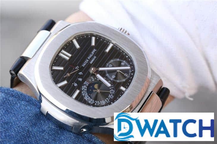 PATEK PHILIPPE NAUTILUS 5712 GOOD IMITATION WATCHES BLACK DIAL LEATHER STRAP PF 40MM