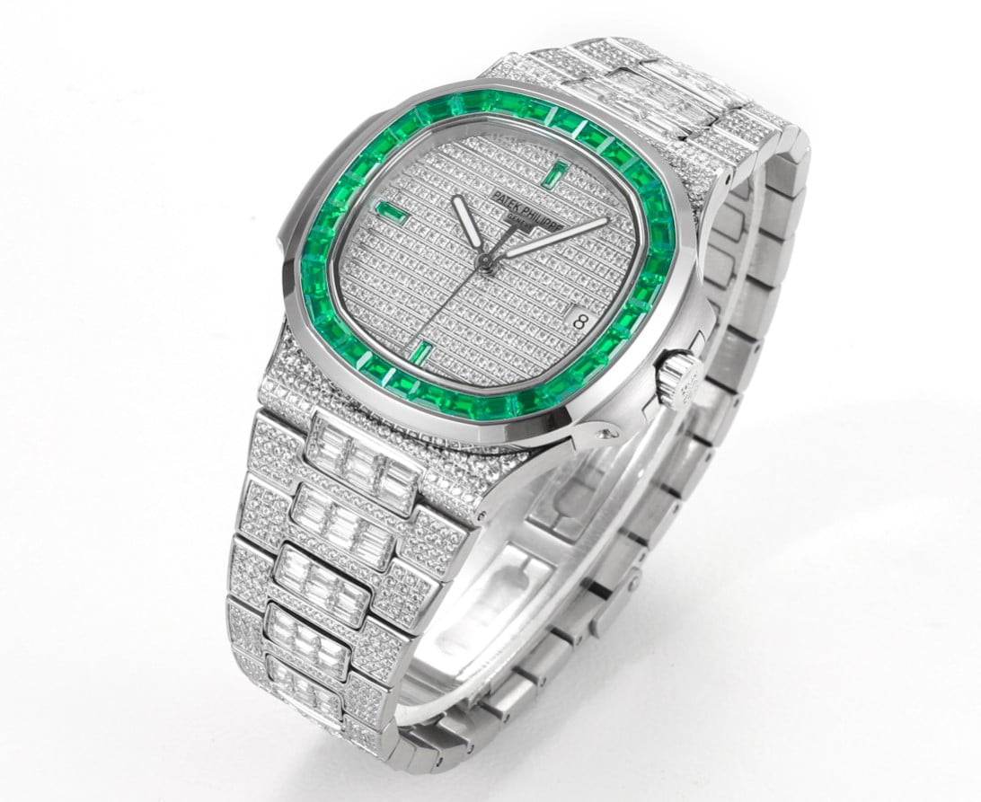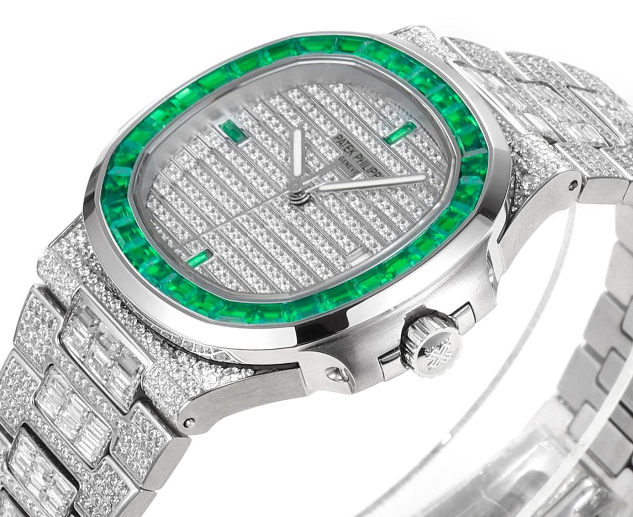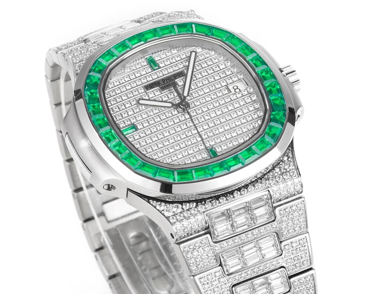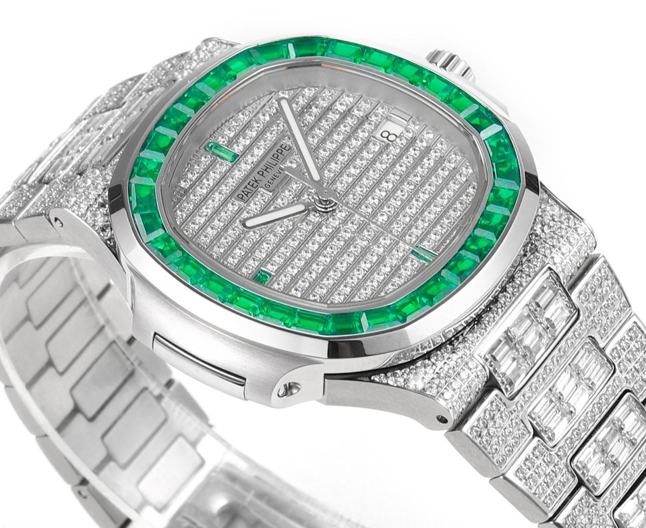 PATEK PHILIPPE NAUTILUS 5719/10G LUXURY REPLICA WATCHES RHINESTONE EMERAL GEM MS FACTORY 40MM