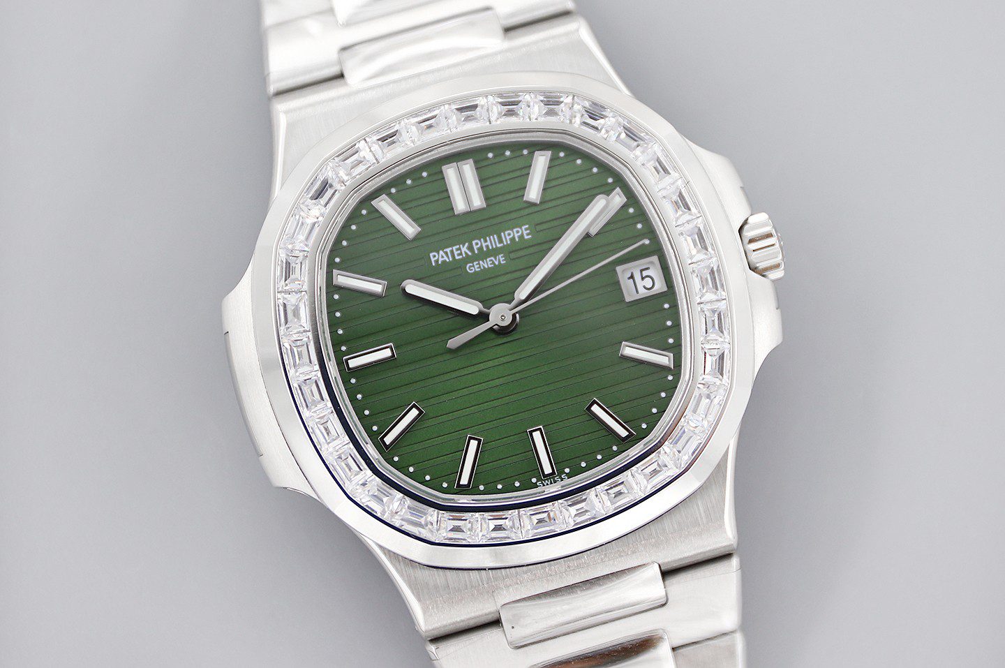 PATEK PHILIPPE NAUTILUS 5723 COPIES WATCHES RHINESTONE MOISSANITE BAGUETTE 3K FACTORY 40MM