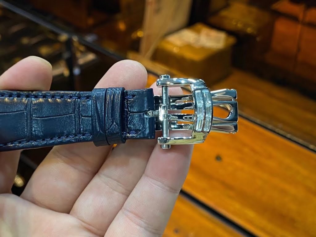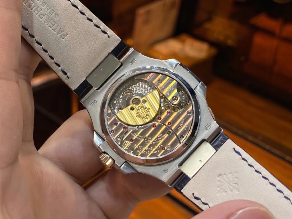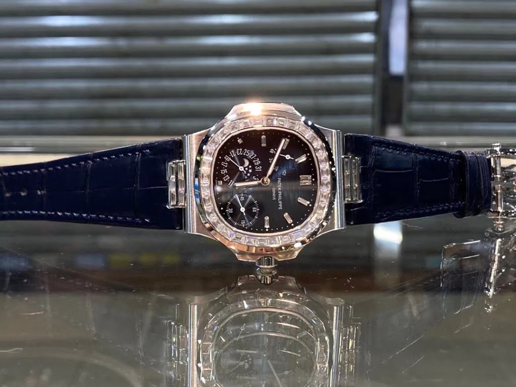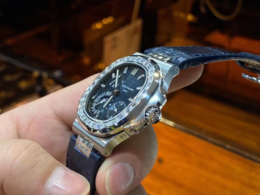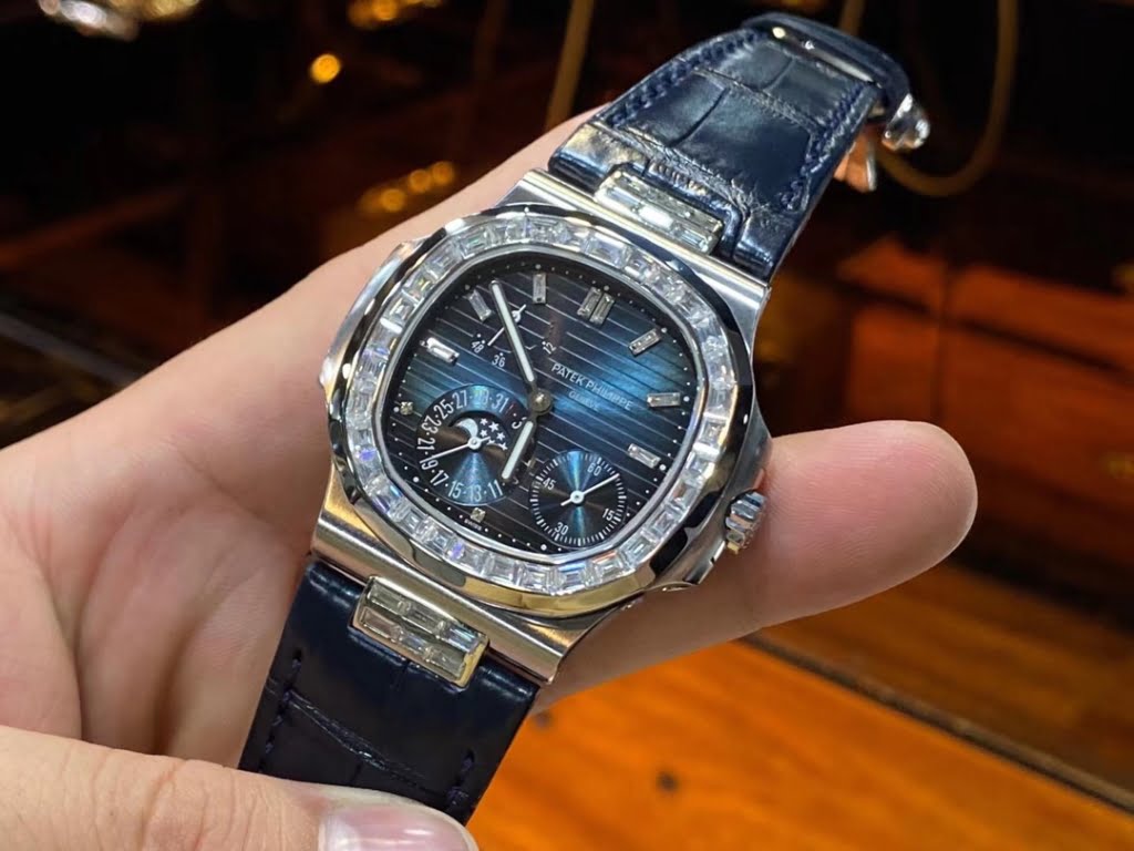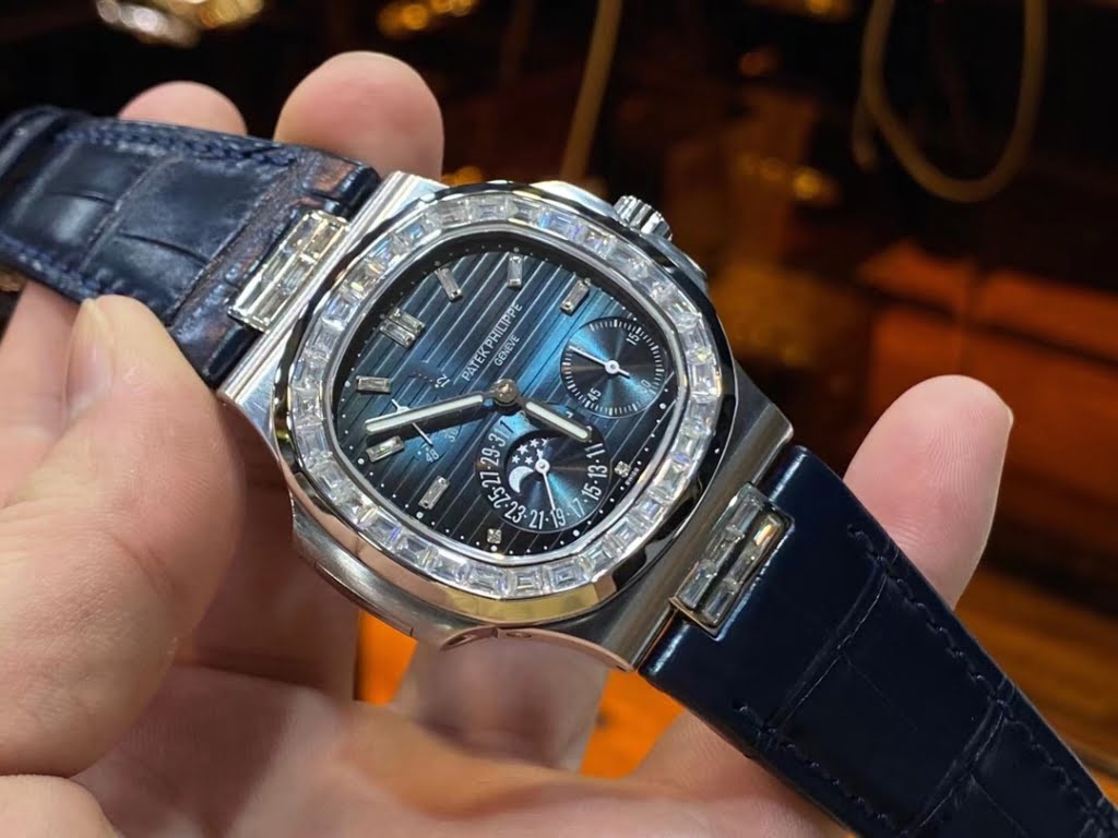 PATEK PHILIPPE NAUTILUS 5724G REPLICA WATCHES RHINESTONE BAGUETTE BLUE DIAL LEATHER STRAP GRF 40MM