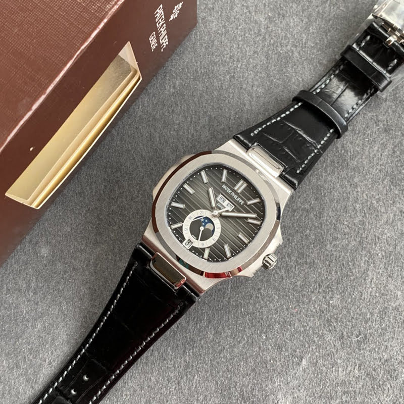 PATEK PHILIPPE NAUTILUS 5726/1A-001 BLACK DIAL LEATHER STRAP COPIES WATCHES 40MM