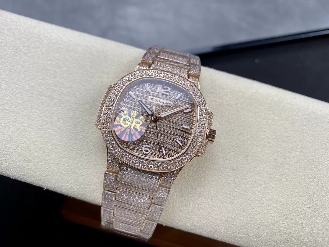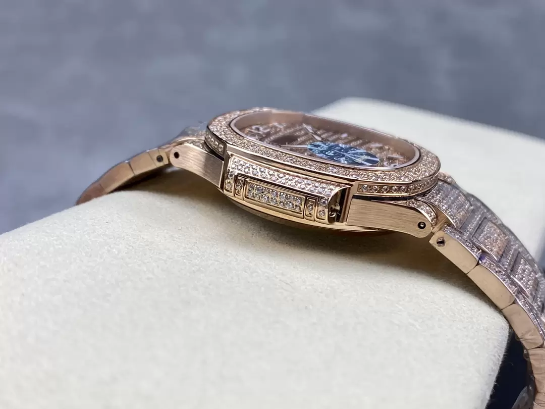 PATEK PHILIPPE NAUTILUS 7118G COPIES WATCHES ROSE GOLD RHINESTONE 35.2MM
