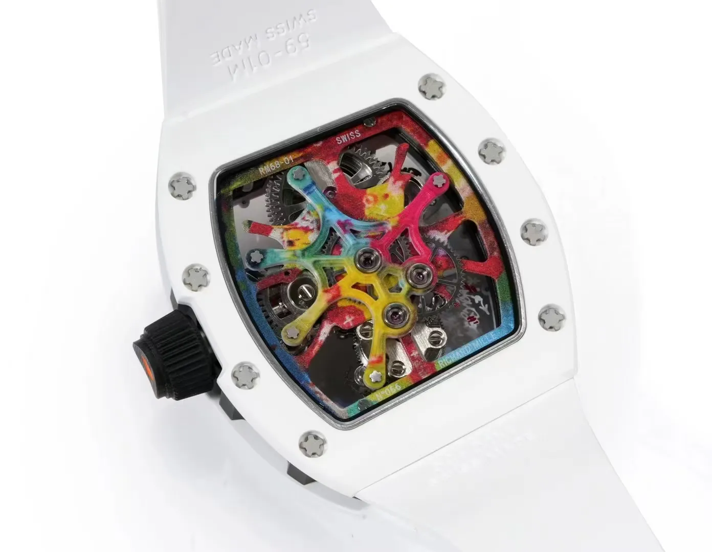 RICHARD MILLE BEST REPLICA WATCH CERAMIC WHITE RAINBOW DIAL RM FACTORY 45MM