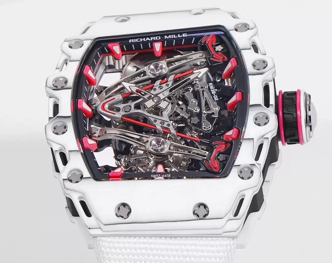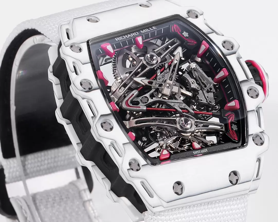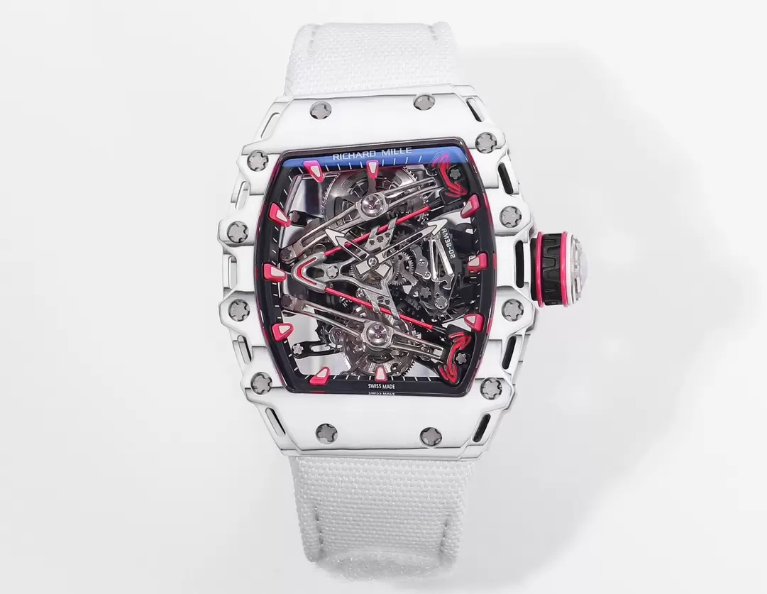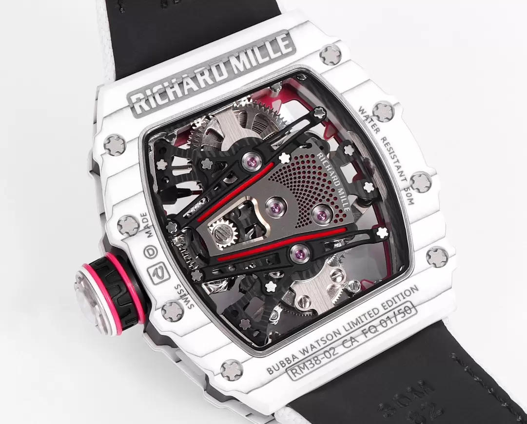 RICHARD MILLE RM 38-02 TOUBILLON REPLICA WATCH WHITE CARBON CASE FABRIC STRAP RM FACTORY 41X50MM