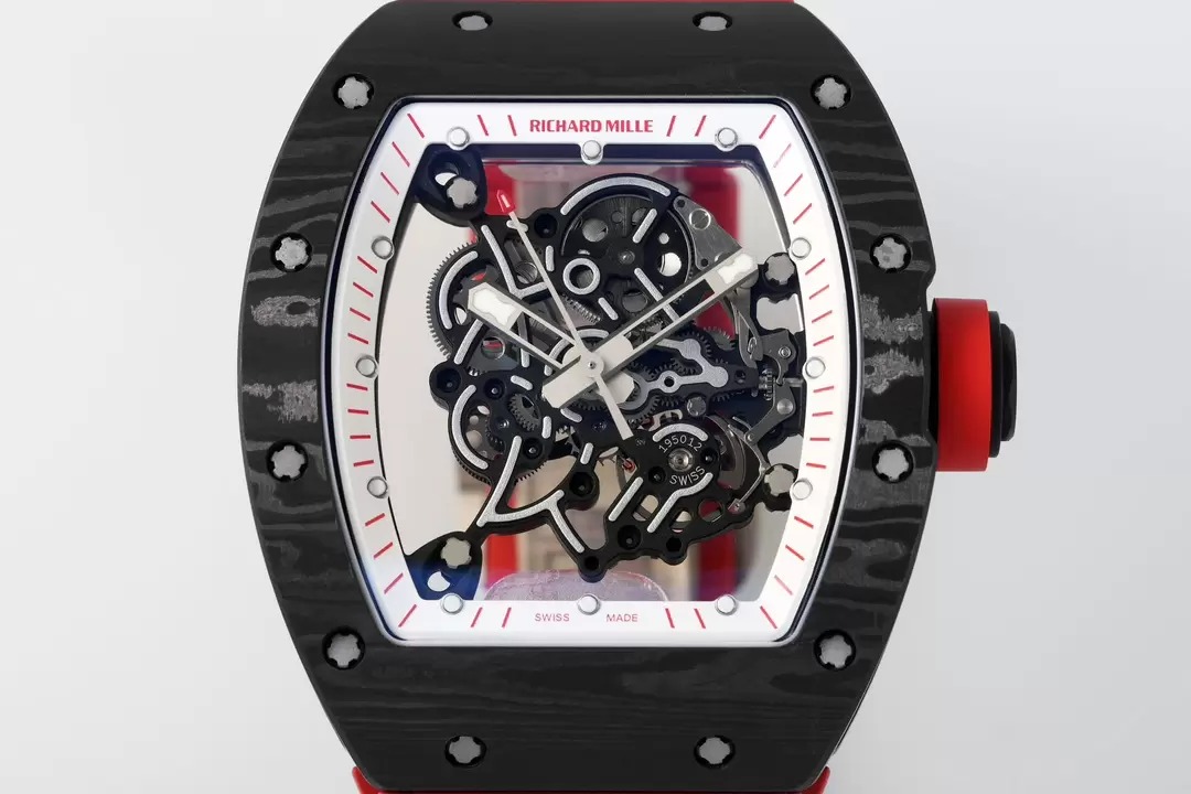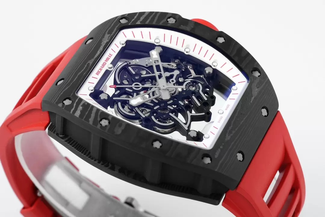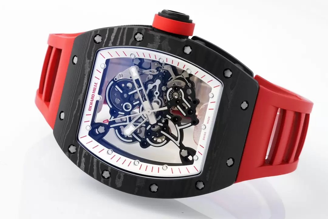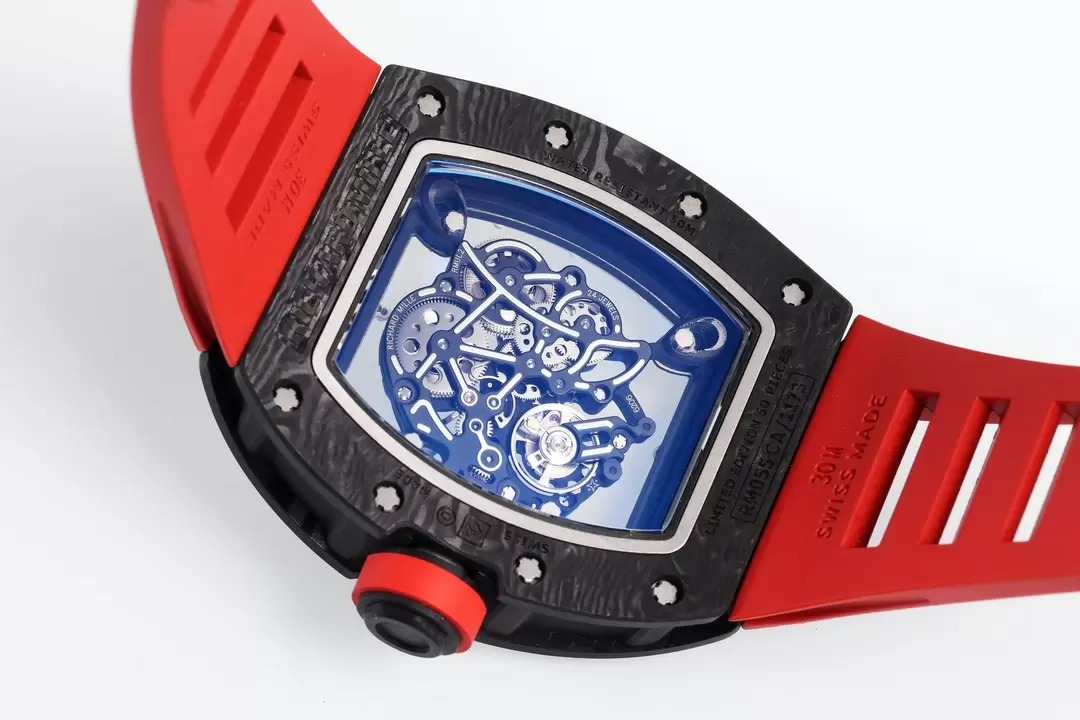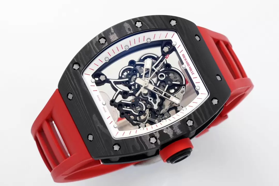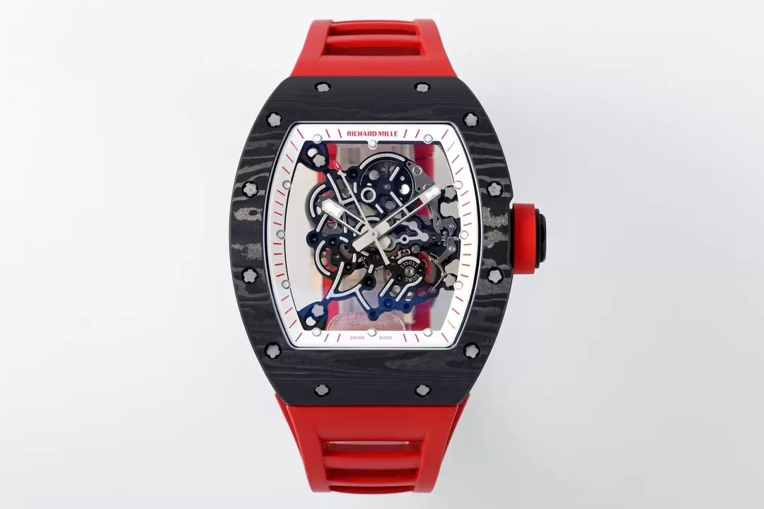 RICHARD MILLE RM055 REPLICA 11 WATCH RED DIAL RUBBER STRAP ZF 49.9X42.7MM