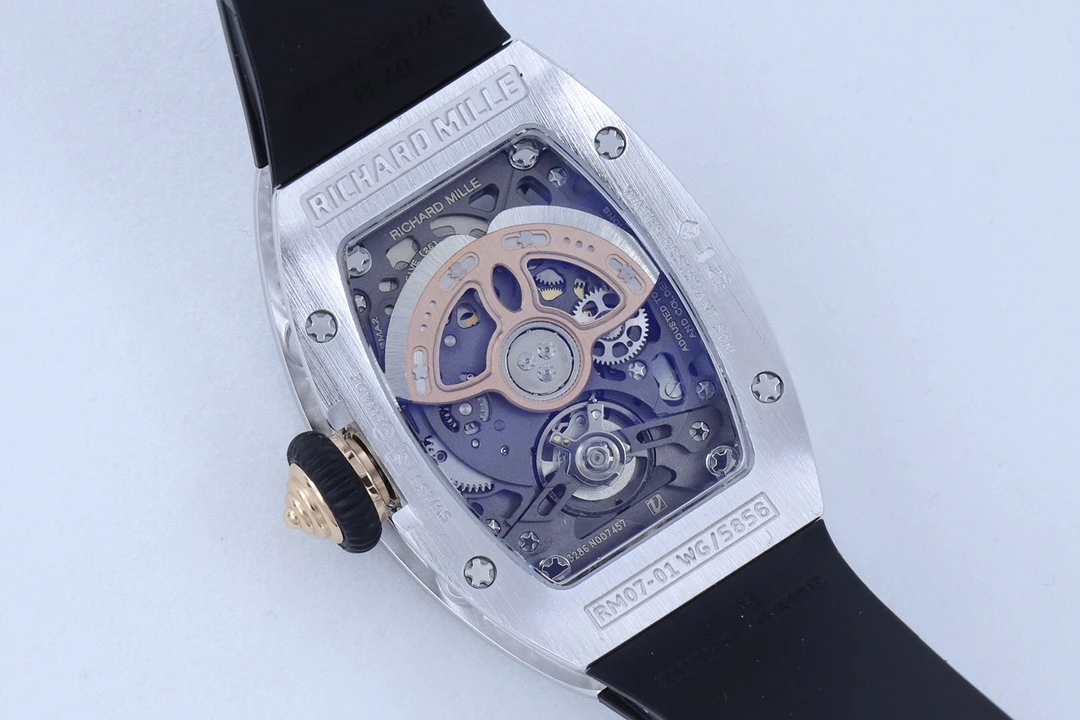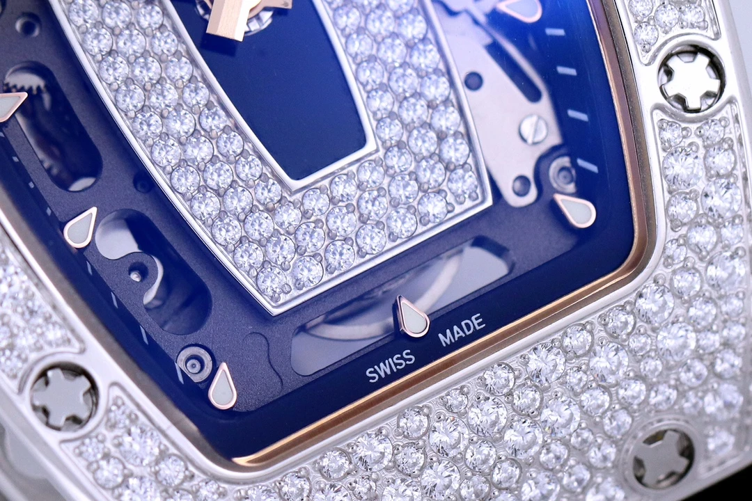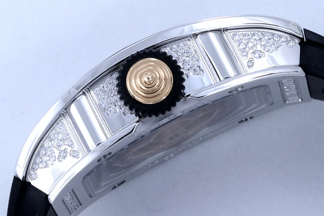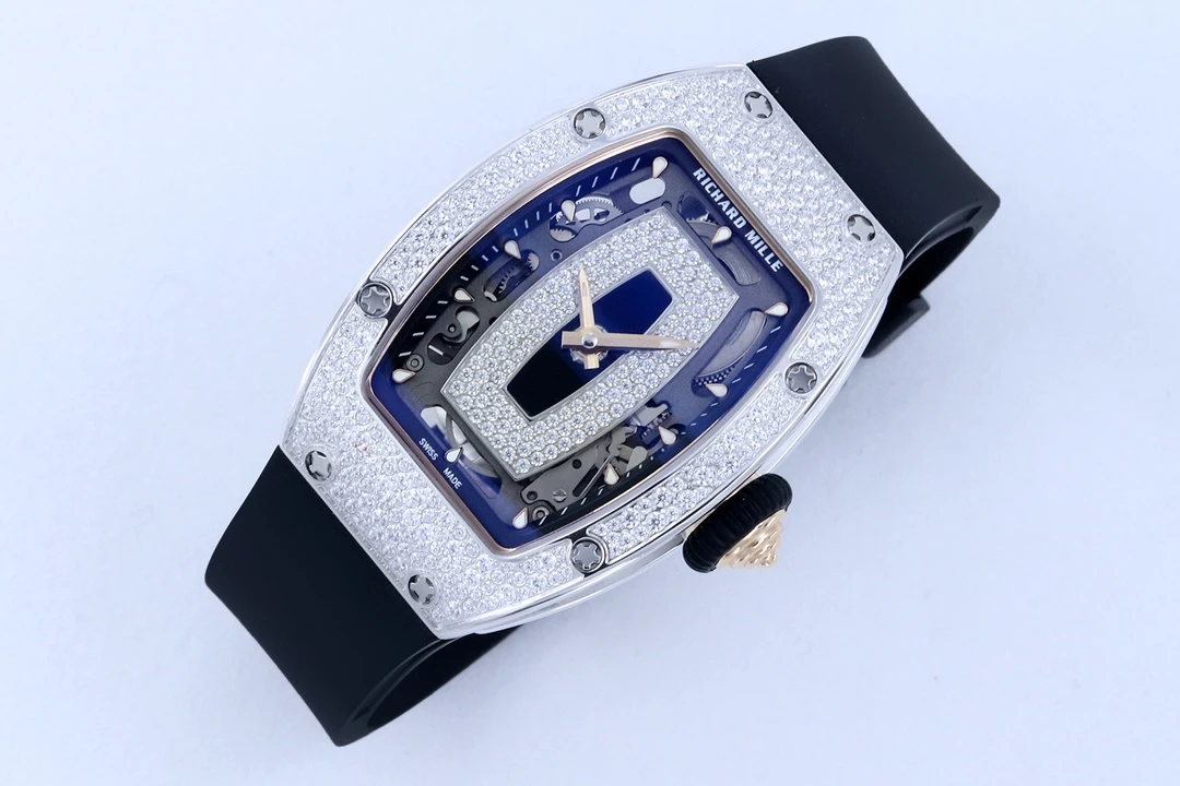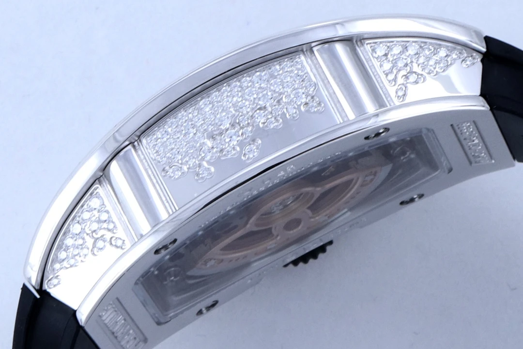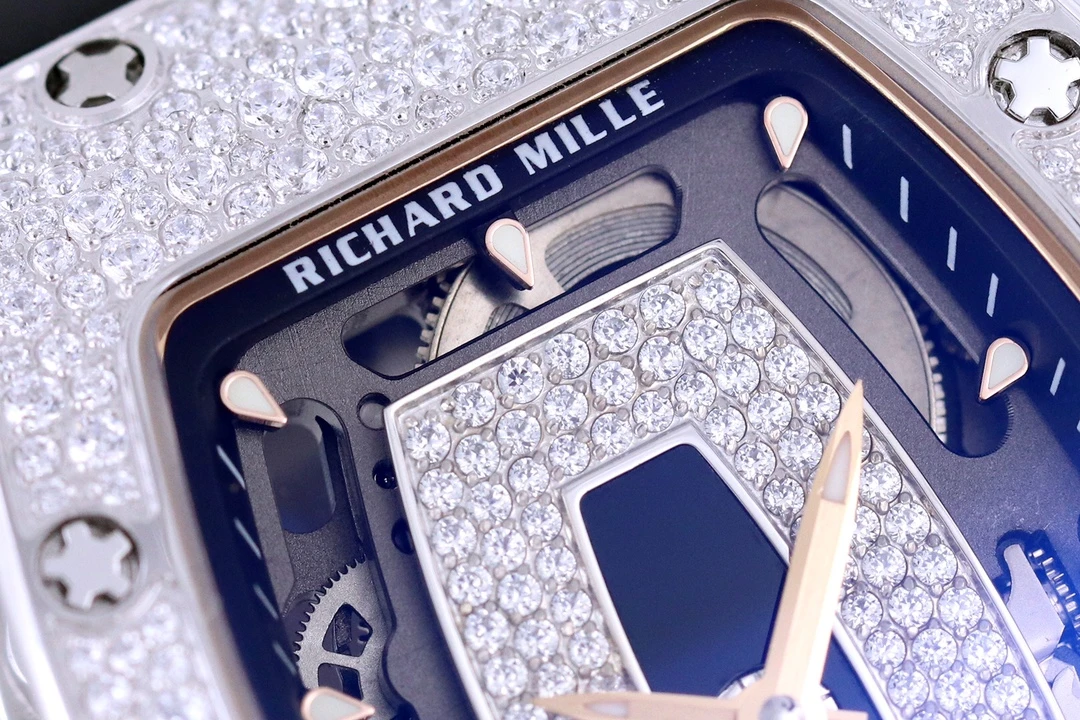 RICHARD MILLE RM07-01 BEST REPLICA WATCHES RHINESTONE CASE BLACK DIAL RUBBER STRAP ZF FACTORY 36MM