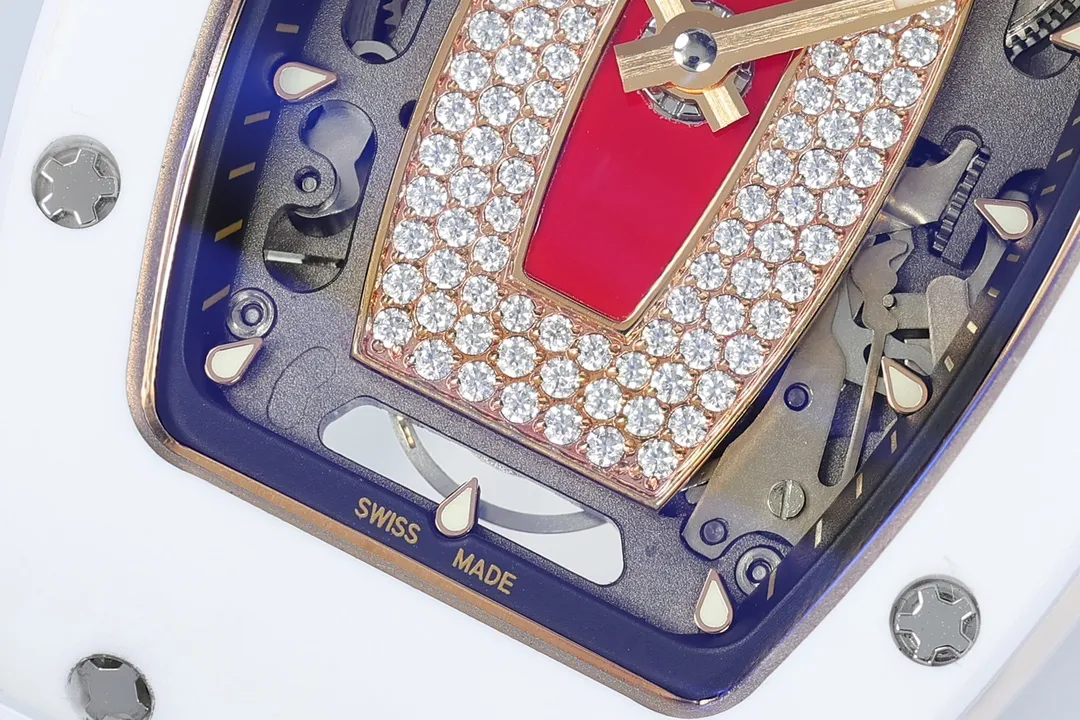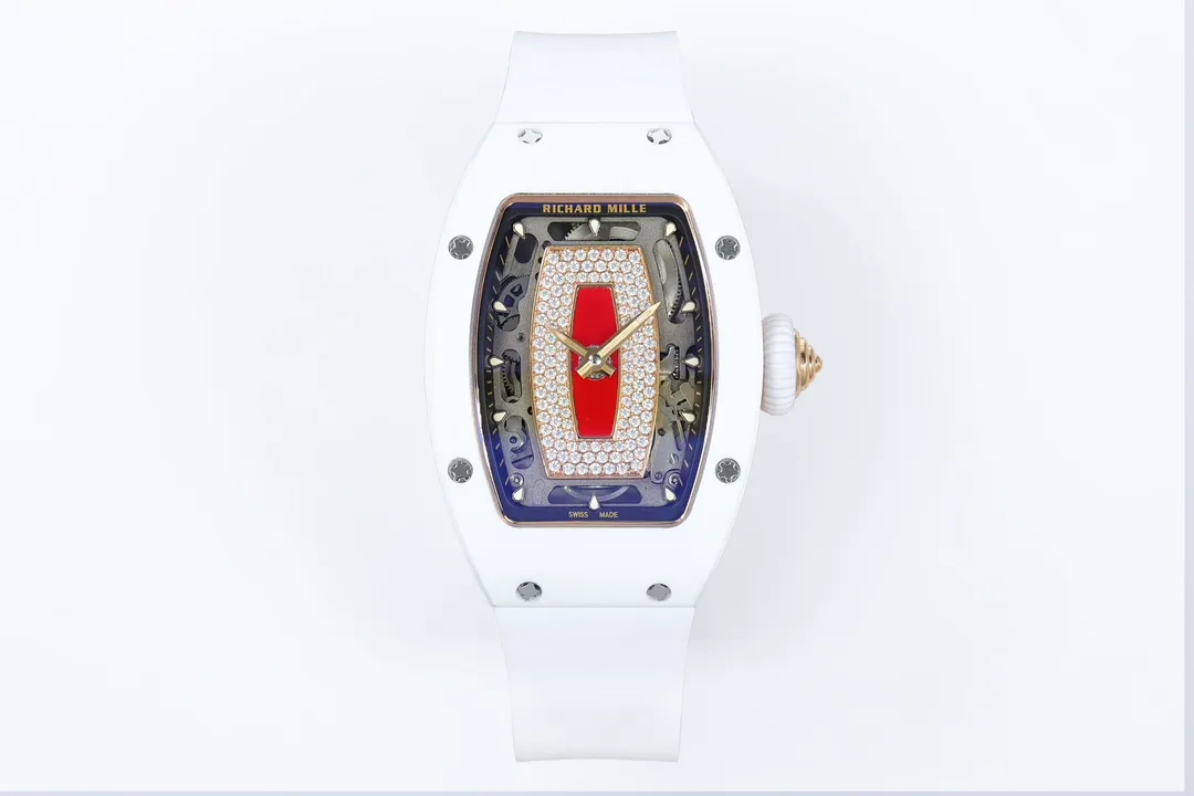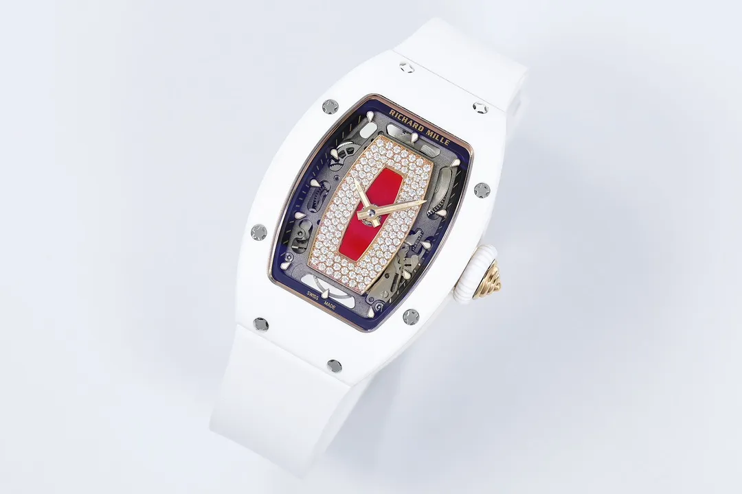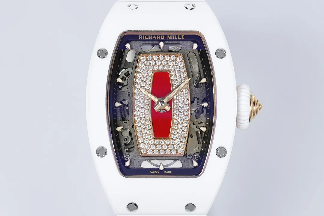 RICHARD MILLE RM07-01 GOOD IMITATION WATCHES RED RHINESTONE DIAL WHITE CERAMIC CASE ZF FACTORY 31.5MM x 12MM