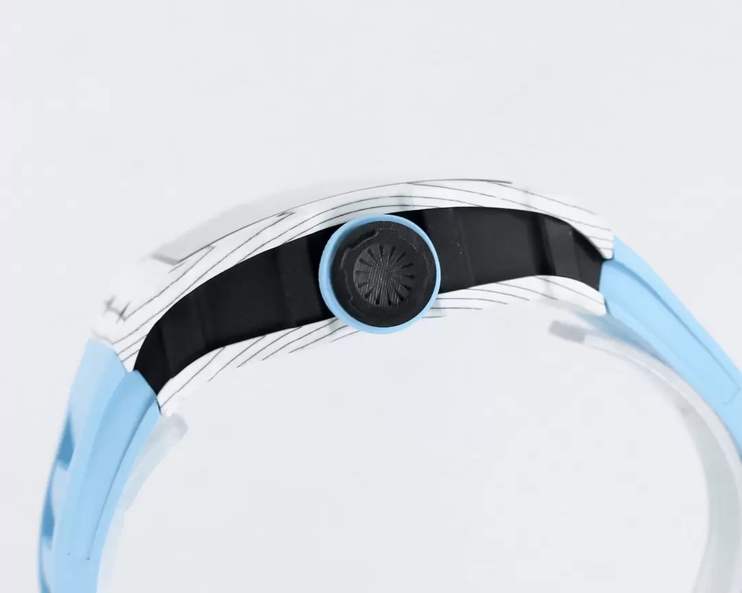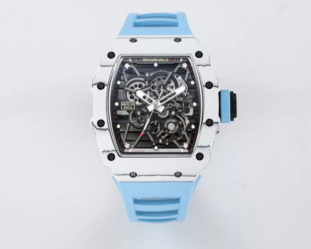 RICHARD MILLE RM35-01 BEST COPIES WATCHES WHITE CARBON CASE BLUE RUBBER STRAP BBR FACTORY 44MM
