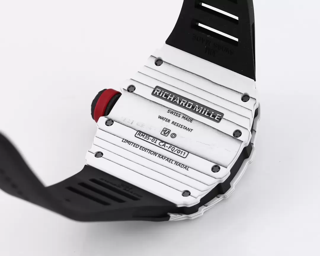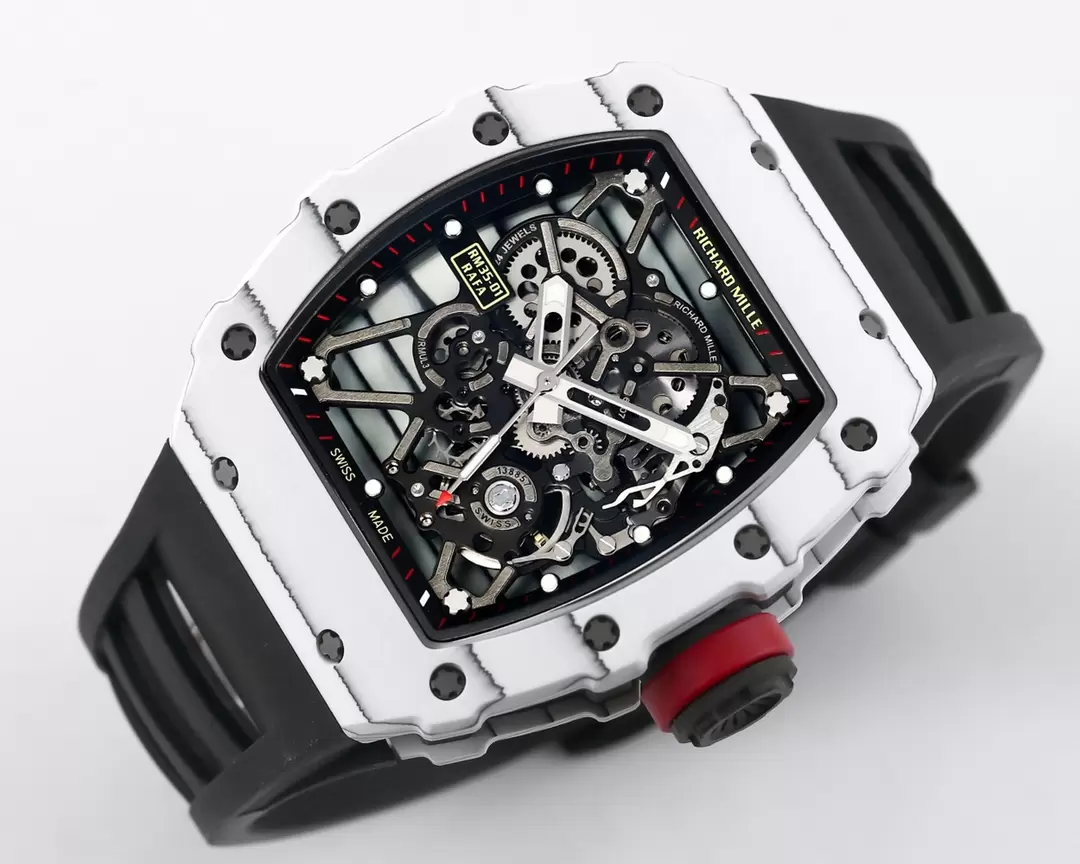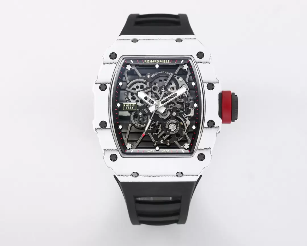 RICHARD MILLE RM35-01 IMITATION WATCHES WHITE CARBON CASE BLACK RUBBER STRAP BBR FACTORY 44MM