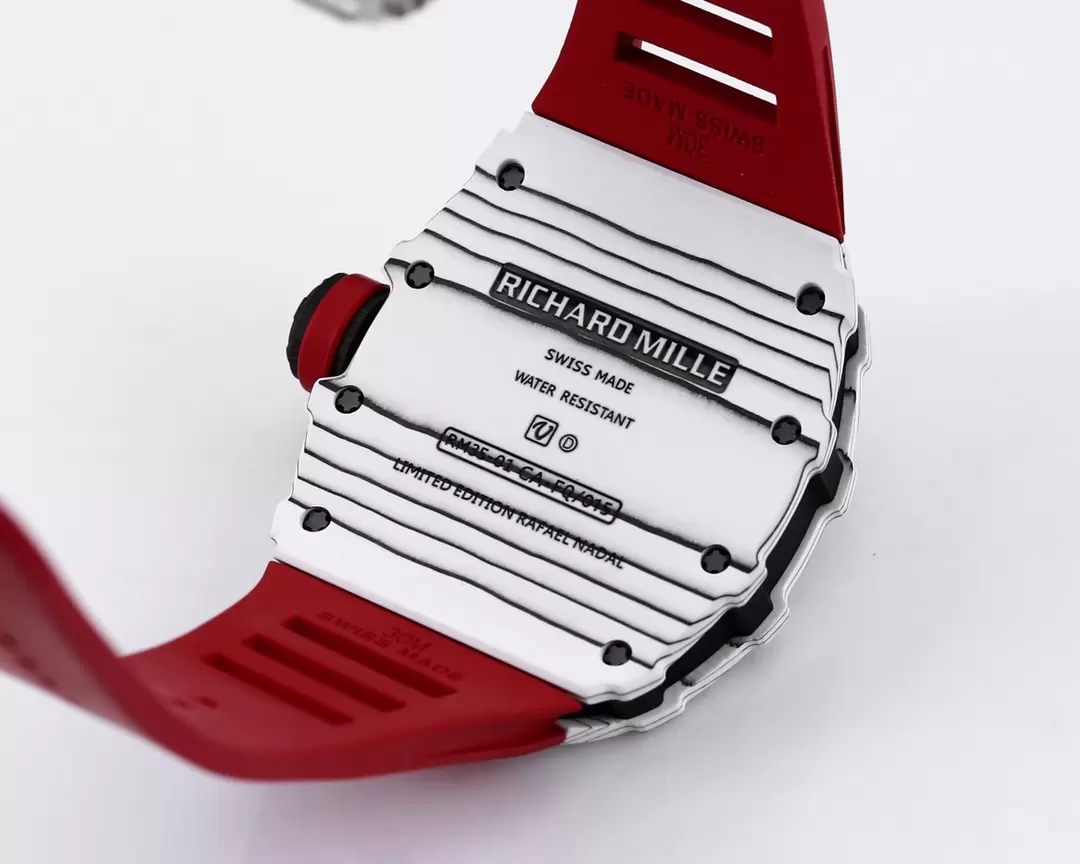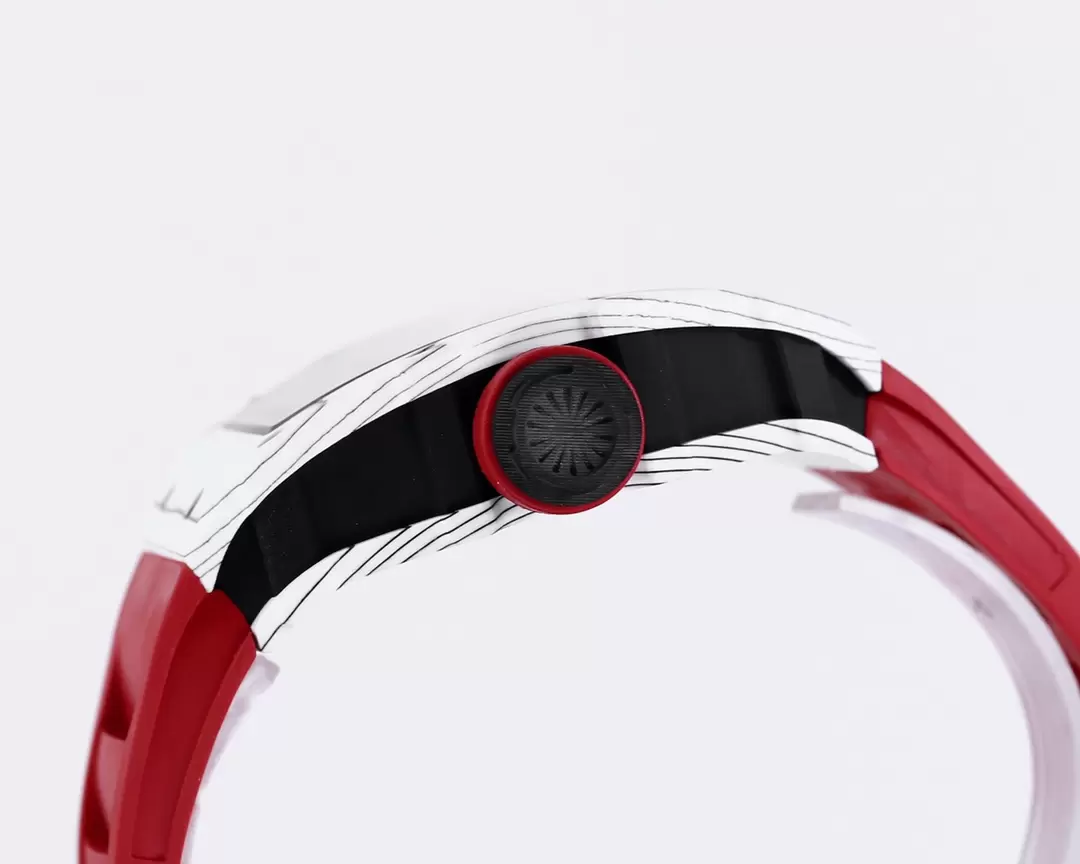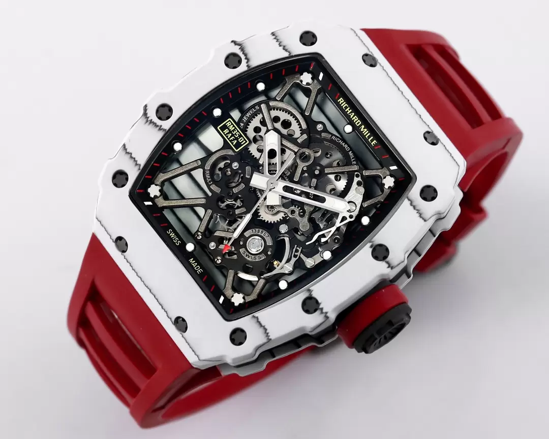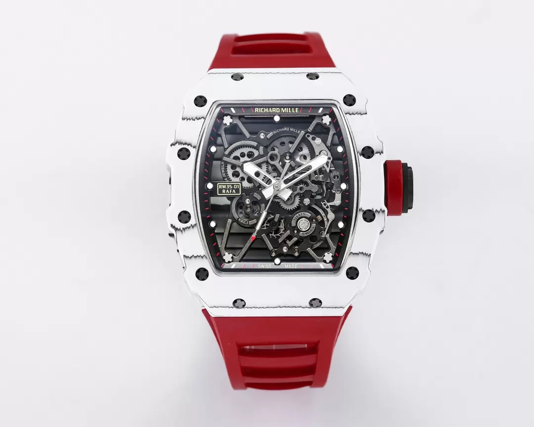 RICHARD MILLE RM35-01 LUXURY REPLICA WATCHES WHITE CARBON CASE RED RUBBER STRAP BBR FACTORY 44MM