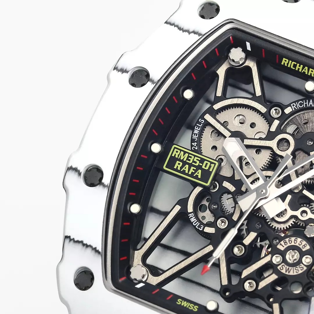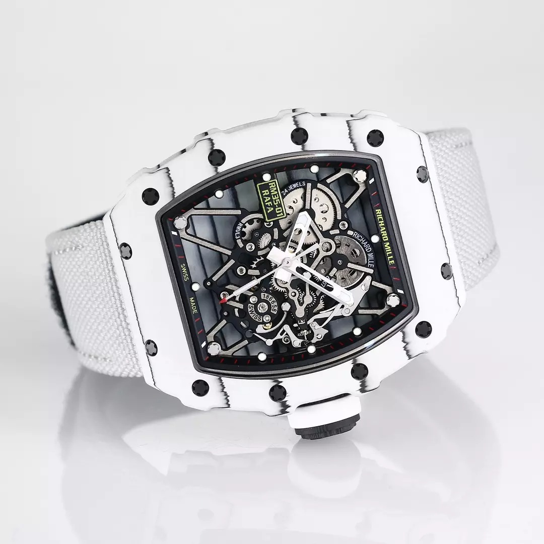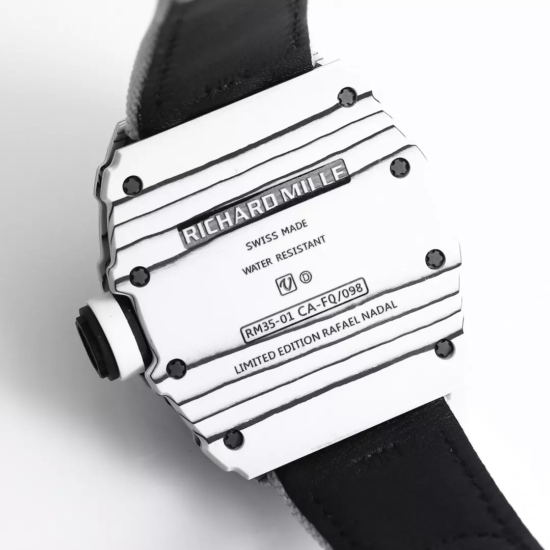RICHARD MILLE RM35-01 REPLICA WATCH WHITE FABRIC STRAP CARBON V2 BBR 44MM