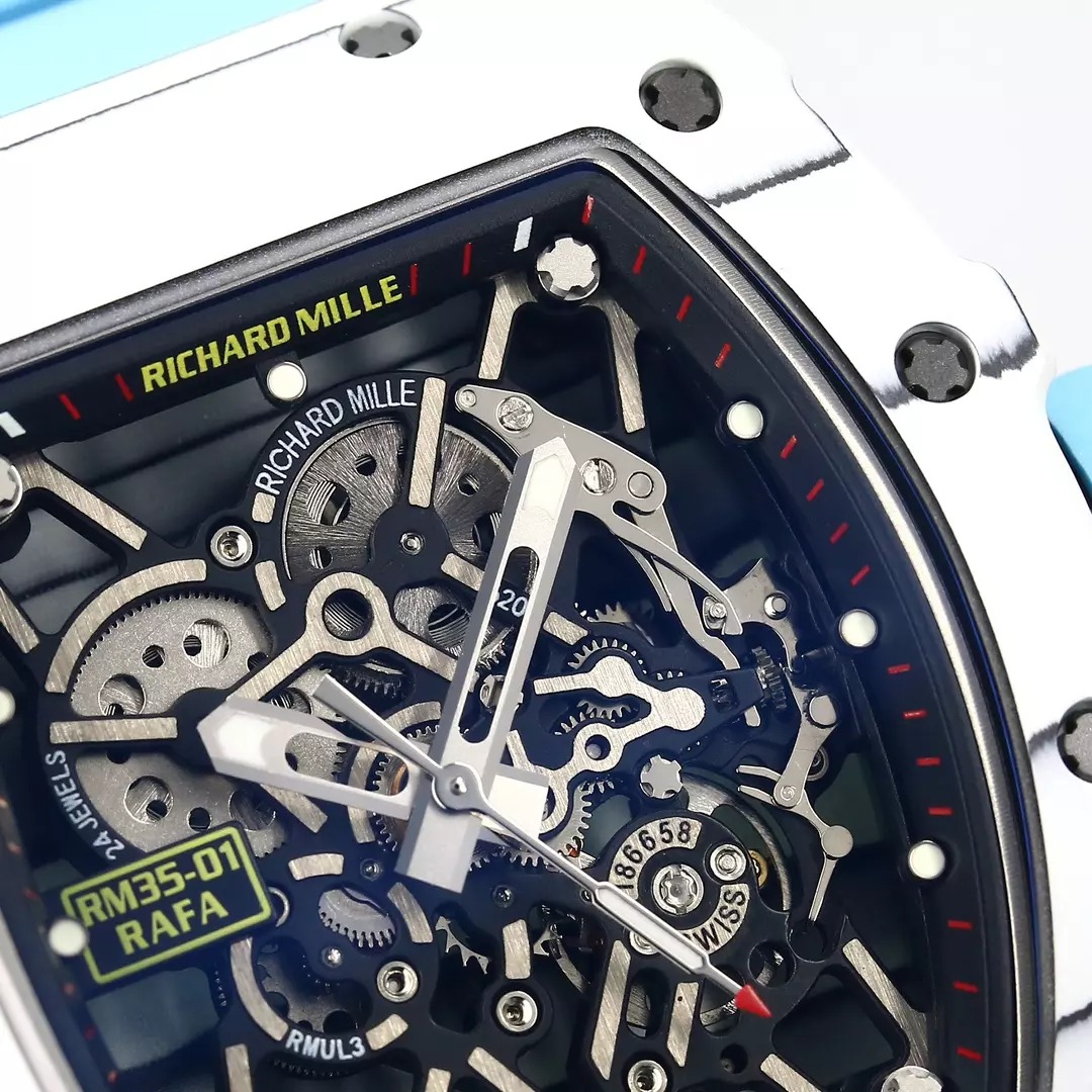 RICHARD MILLE RM35-01 SUPER FAKE 11 WATCH CARBON BLUE RUBBER STRAP V2 BBR 44MM