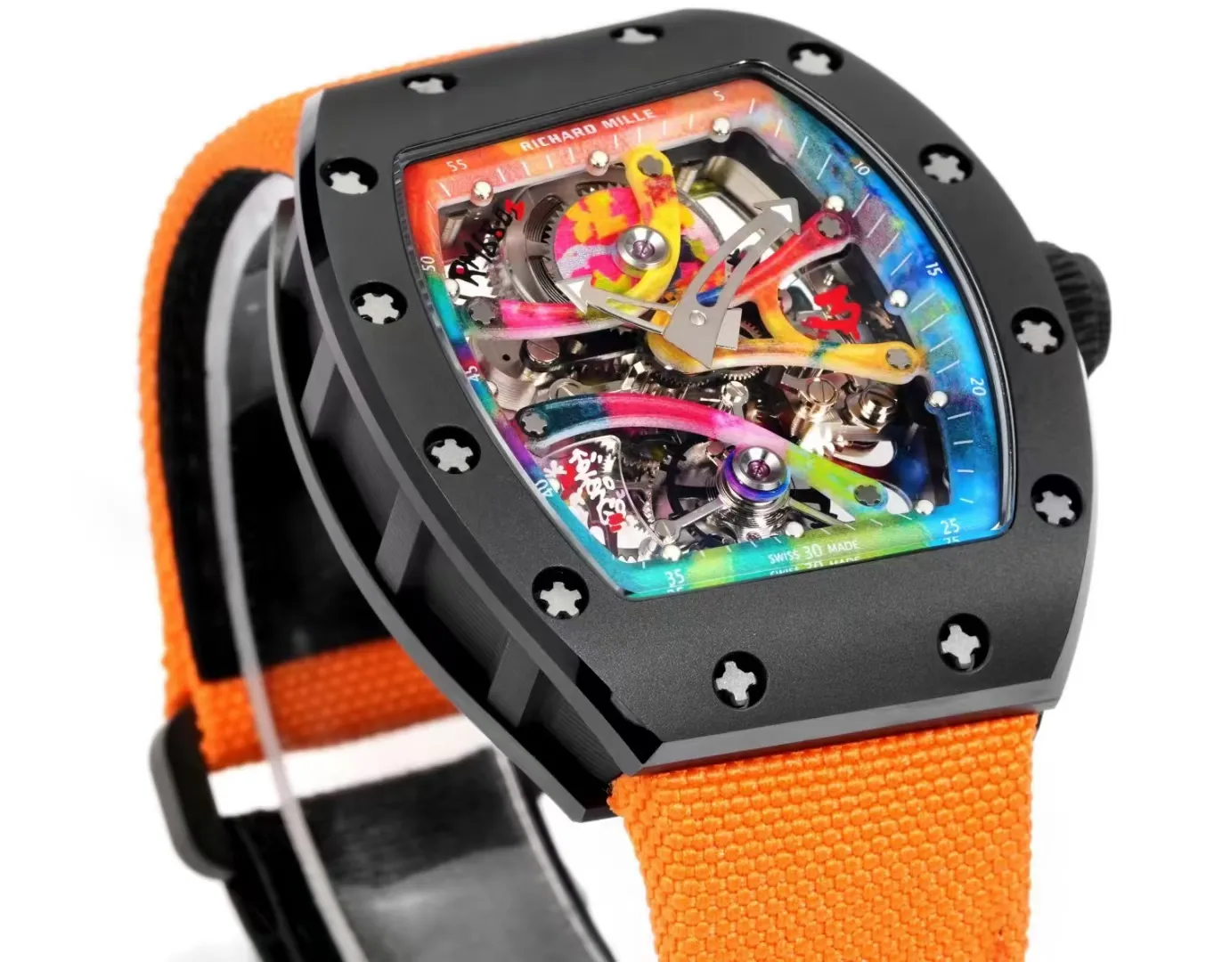 RICHARD MILLE RM38-01 SUPER FAKE WATCHES CERAMIC ORANGE NYLON STARP RM 45MM