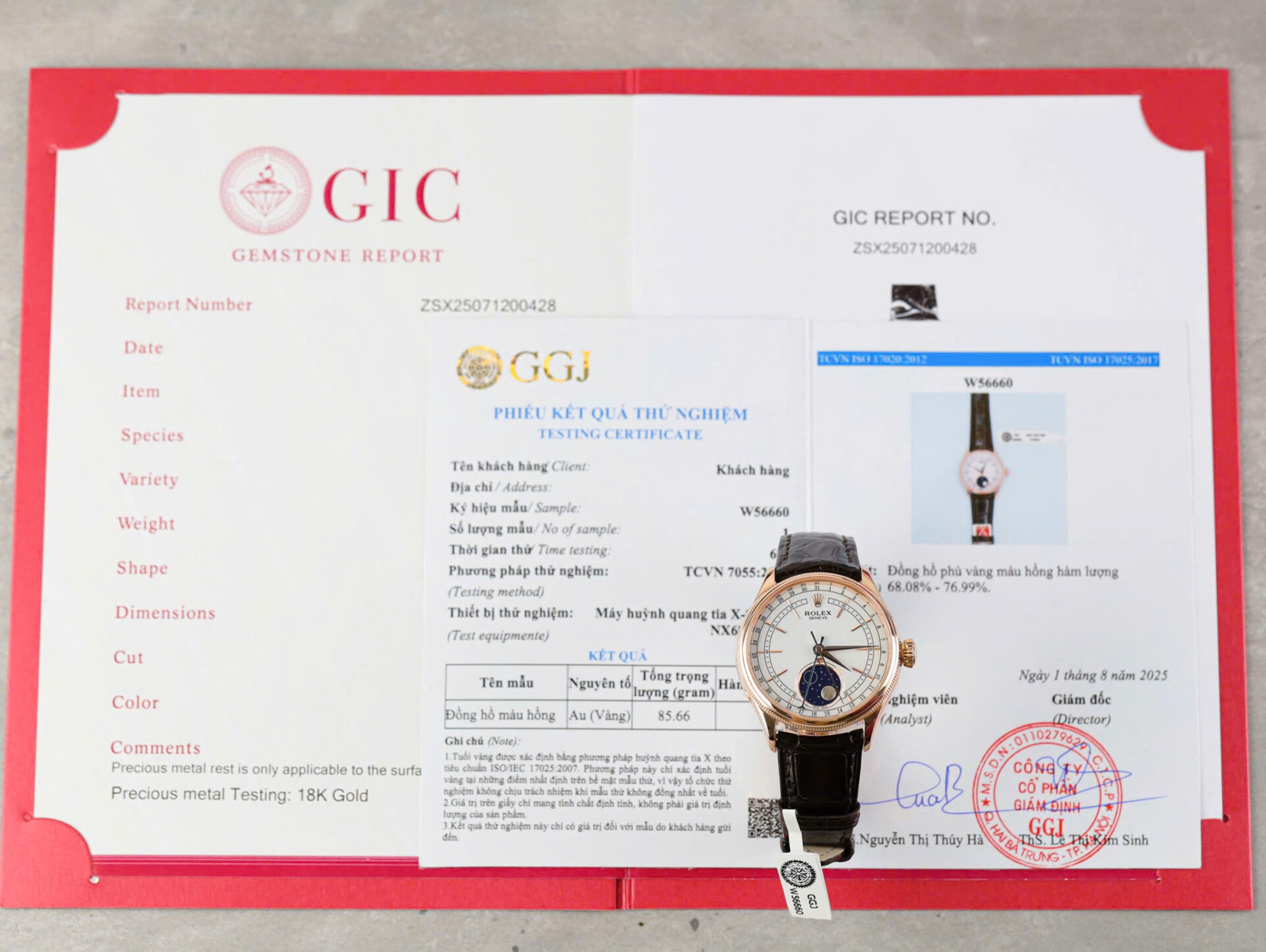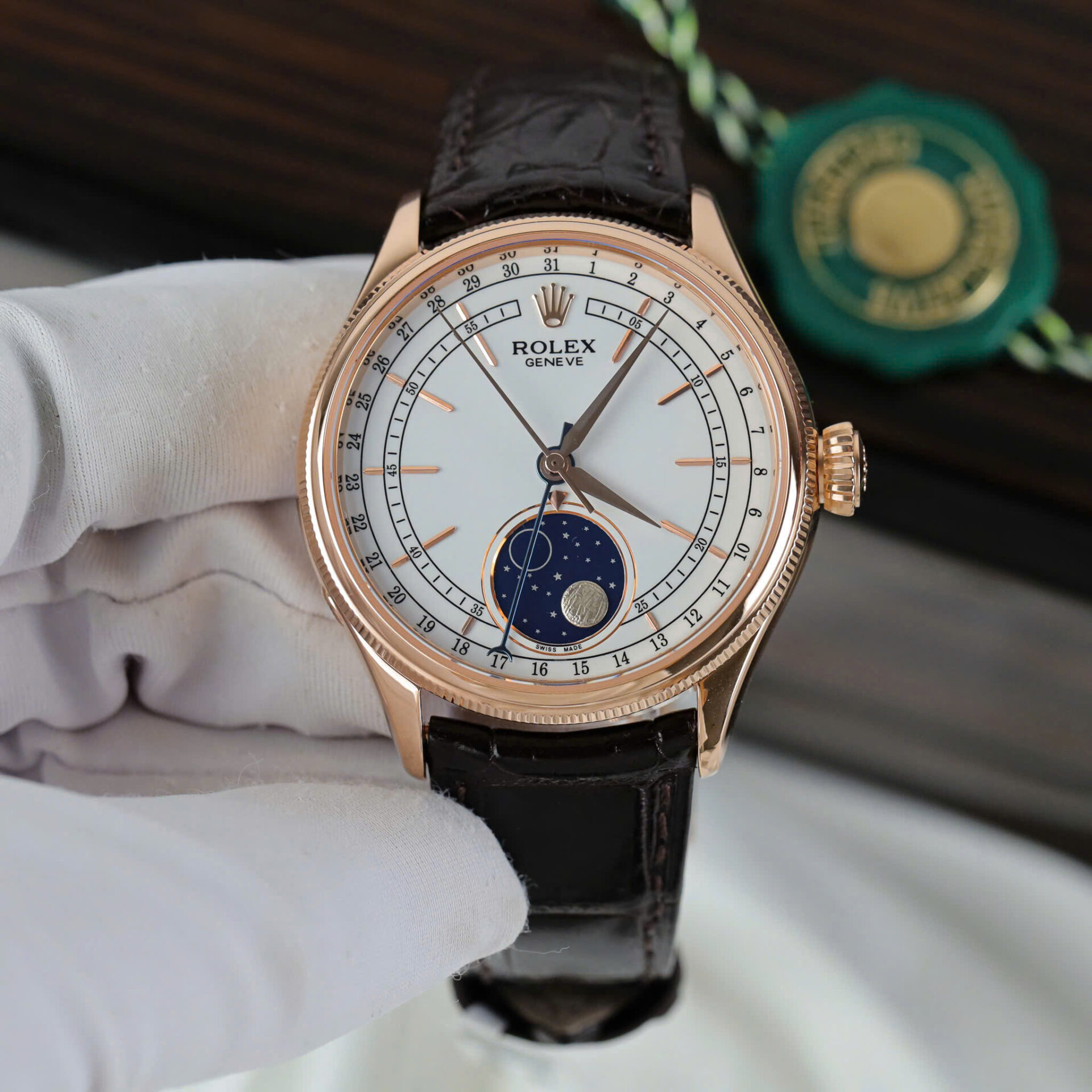 ROLEX CELLINI MOONPHASE HIGH END WATCH REPLICAS ROSE GOLD 18K COVER LEATHER STRAP 39MM