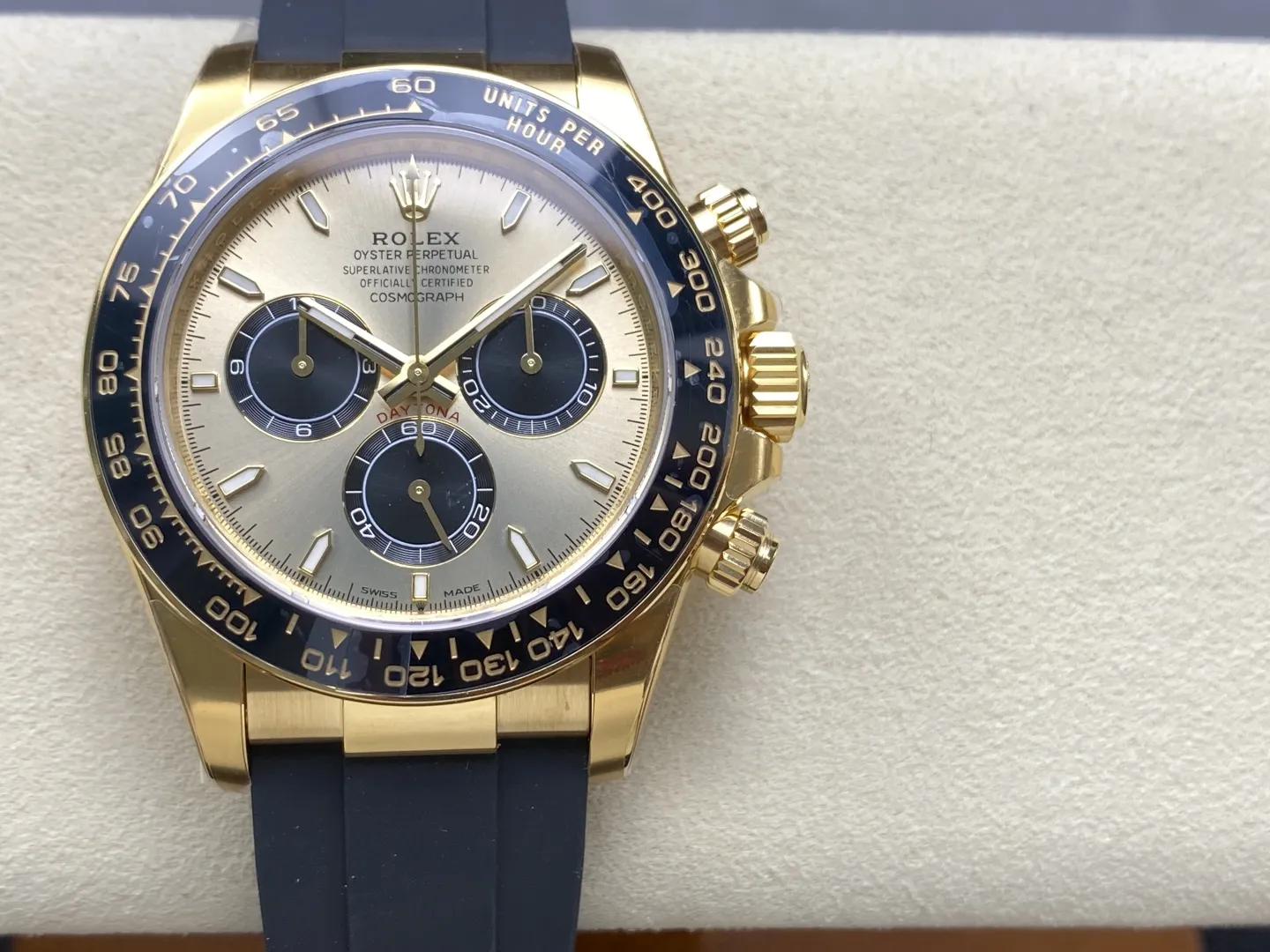 ROLEX COSMOGRAPH DAYTONA M126518LN-0012 HIGH END REPLICA WATCHES GOLD PLATE LUMINOUS HOURS OYSTERFLEX STRAP VS FACTORY 40MM