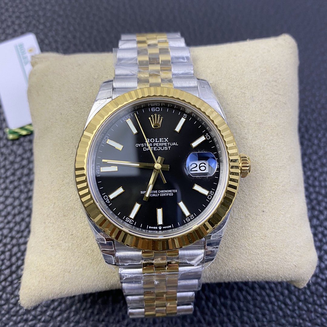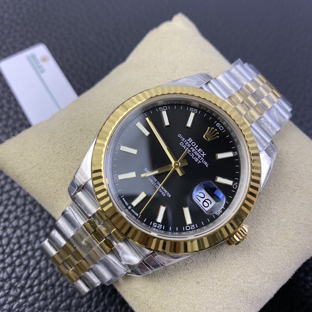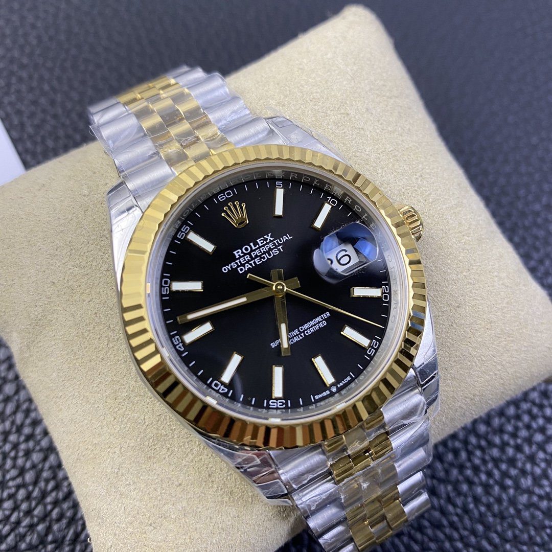 ROLEX DATEJUST COPIES WATCHES TWO TONE BLACK DIAL INDEX HOURS VS FACTORY 41MM