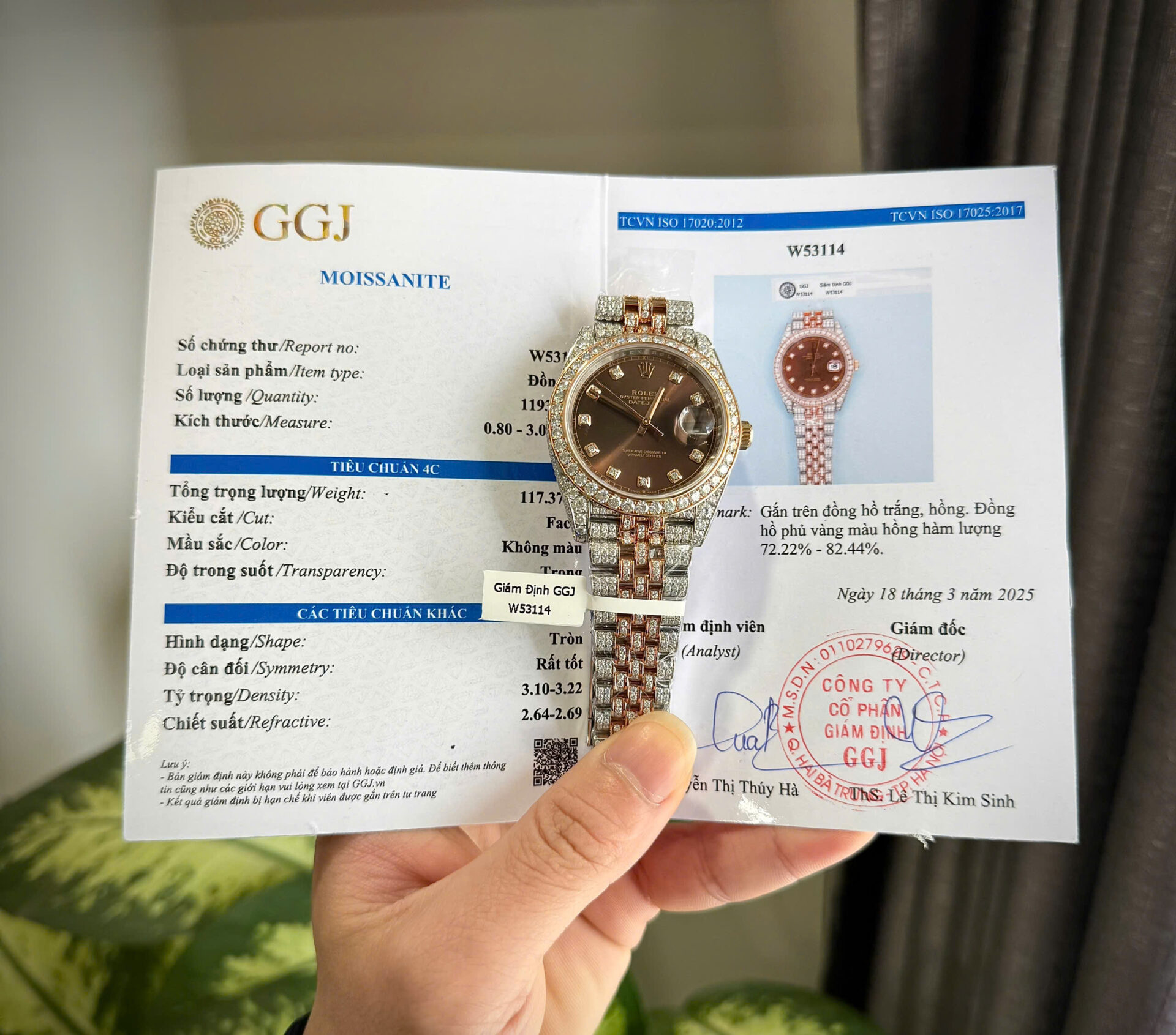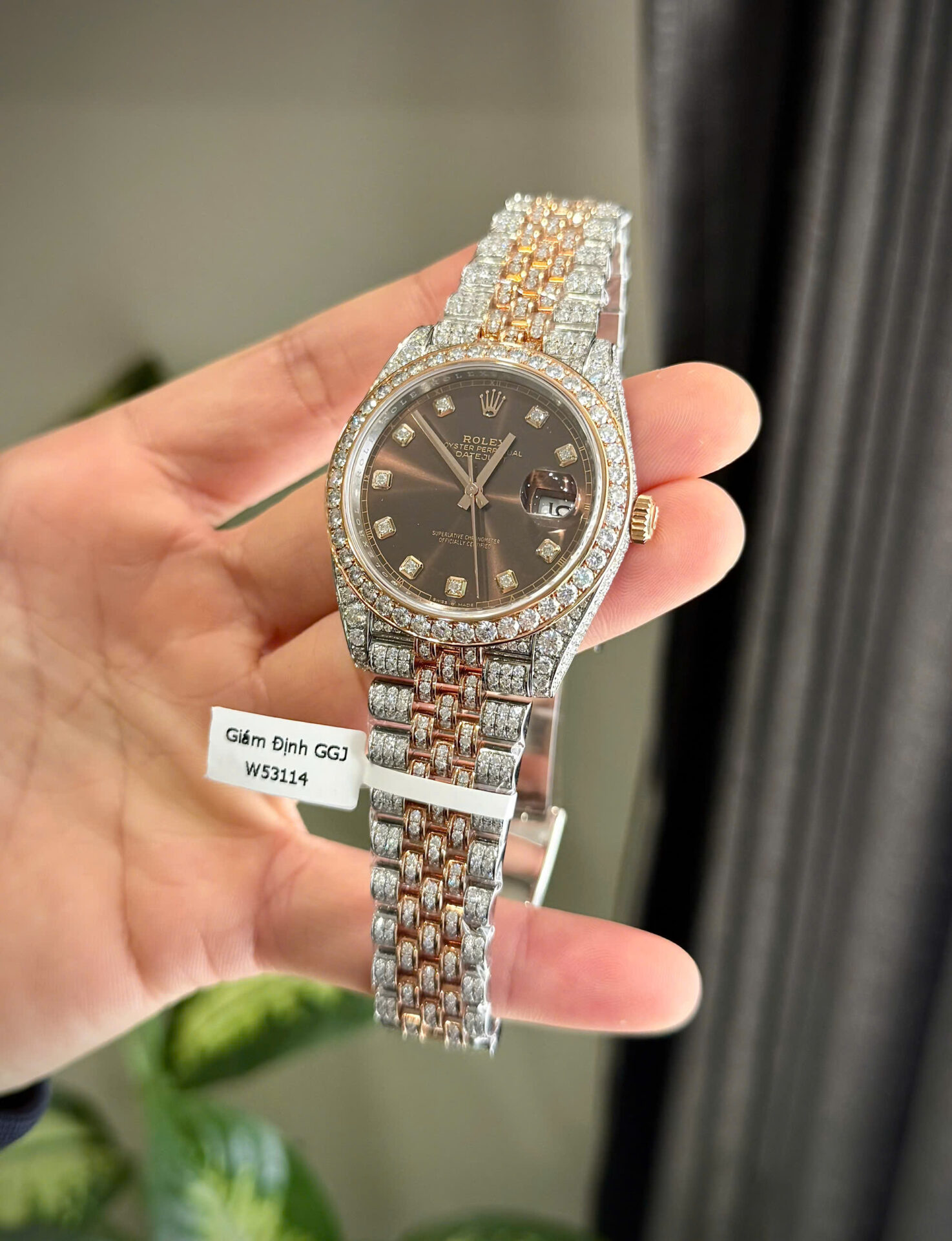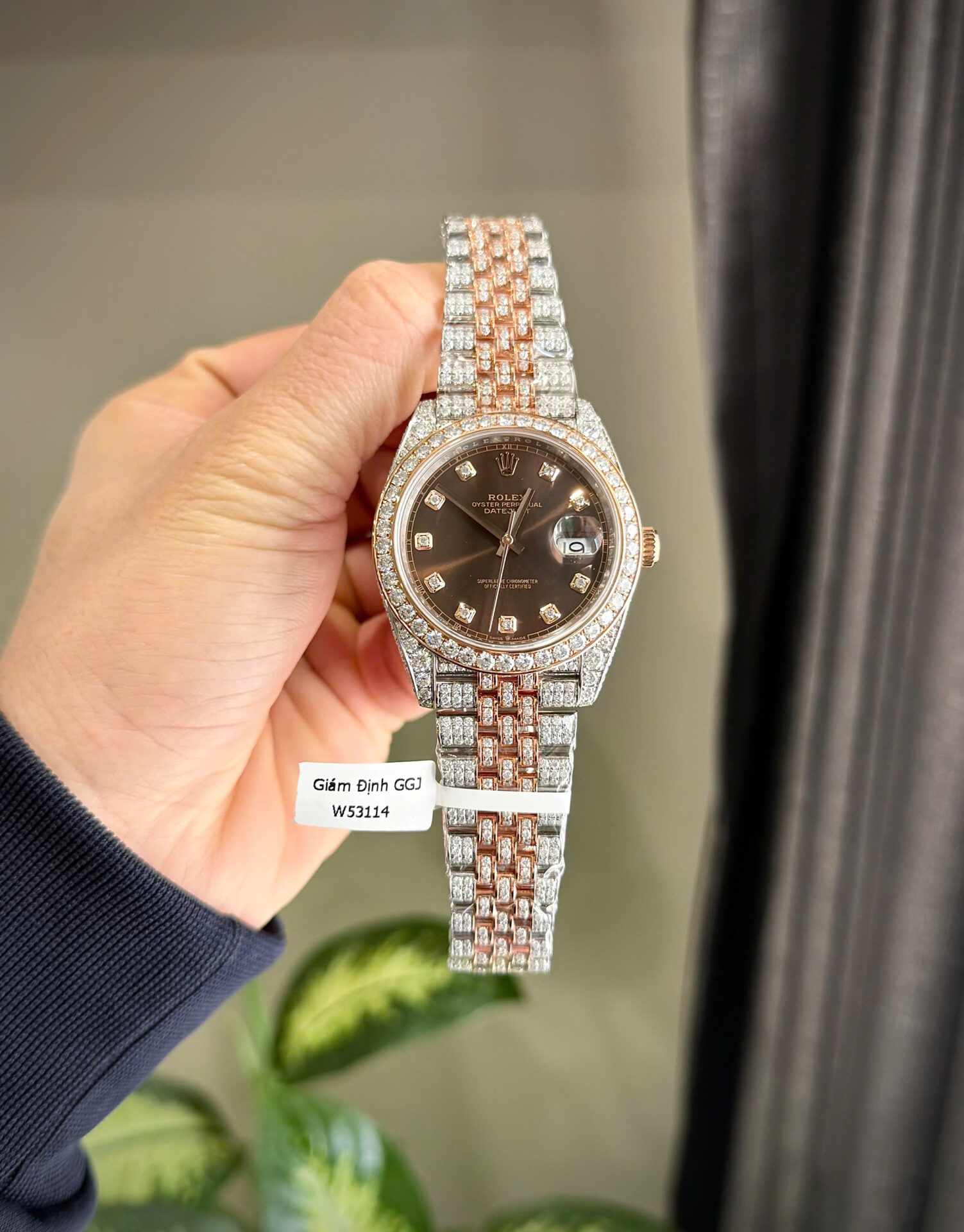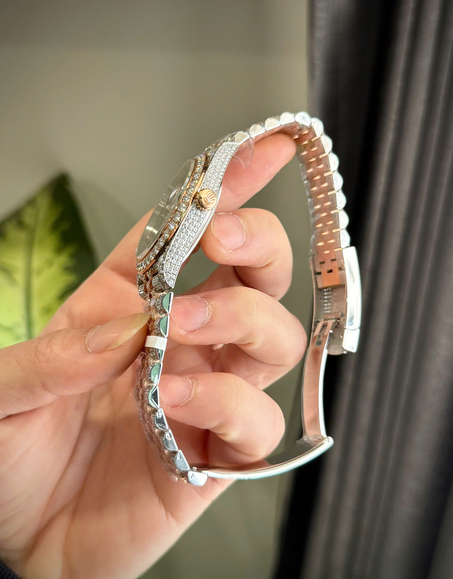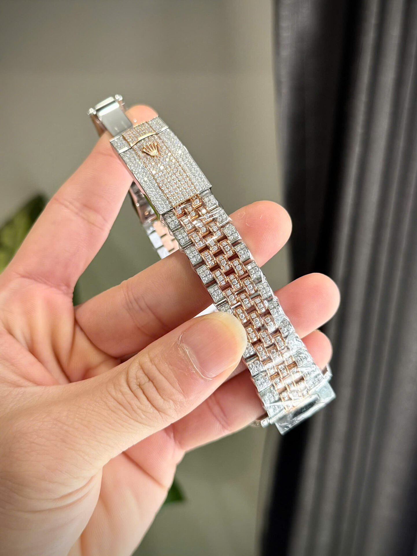 ROLEX DATEJUST CUSTOM WATCH WITH MOISSANITE ROSE WRAPPED GOLD CLEAN 41MM