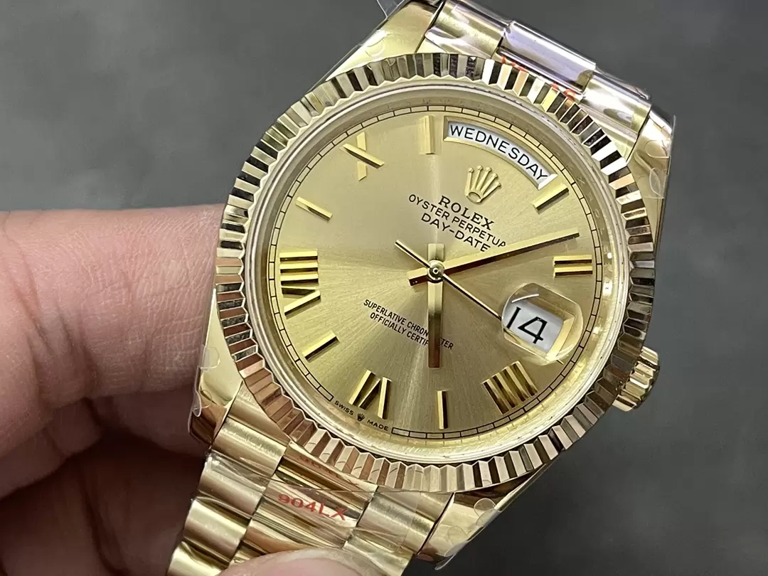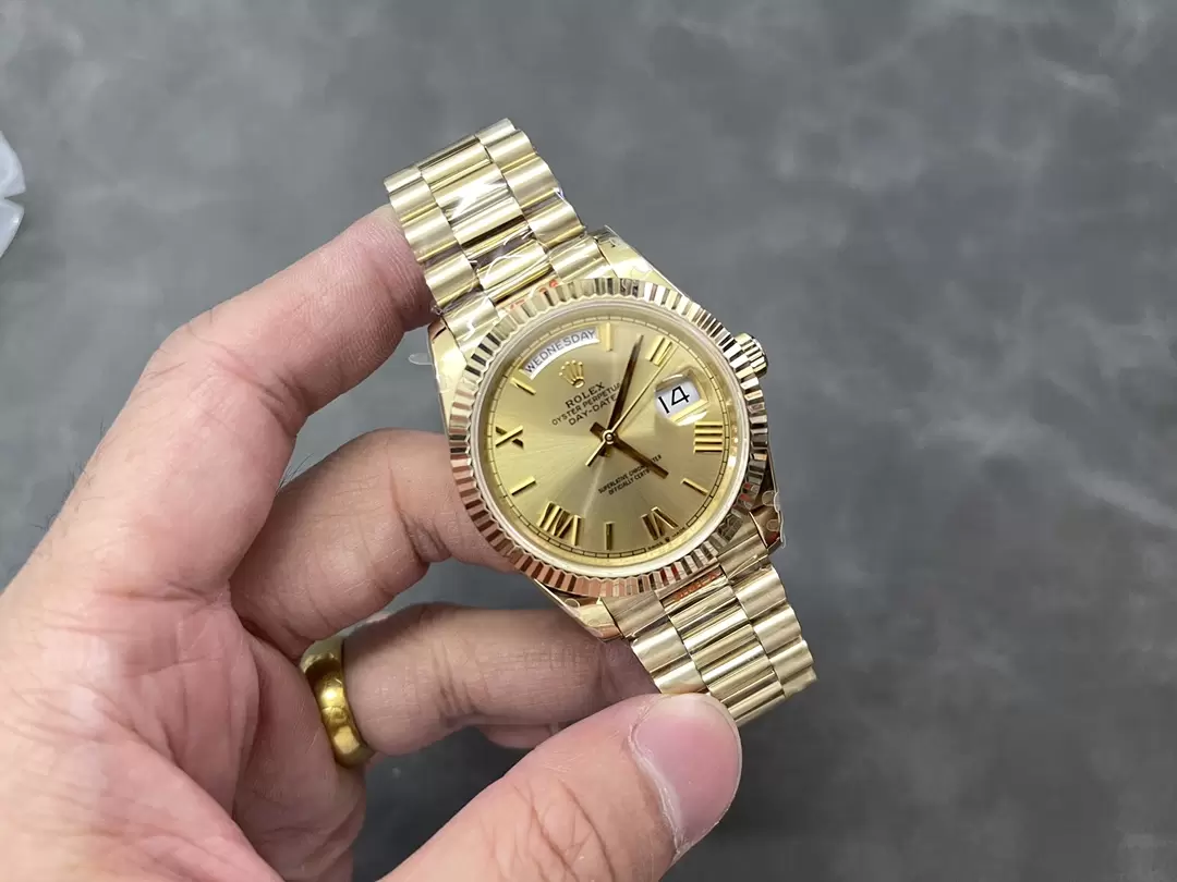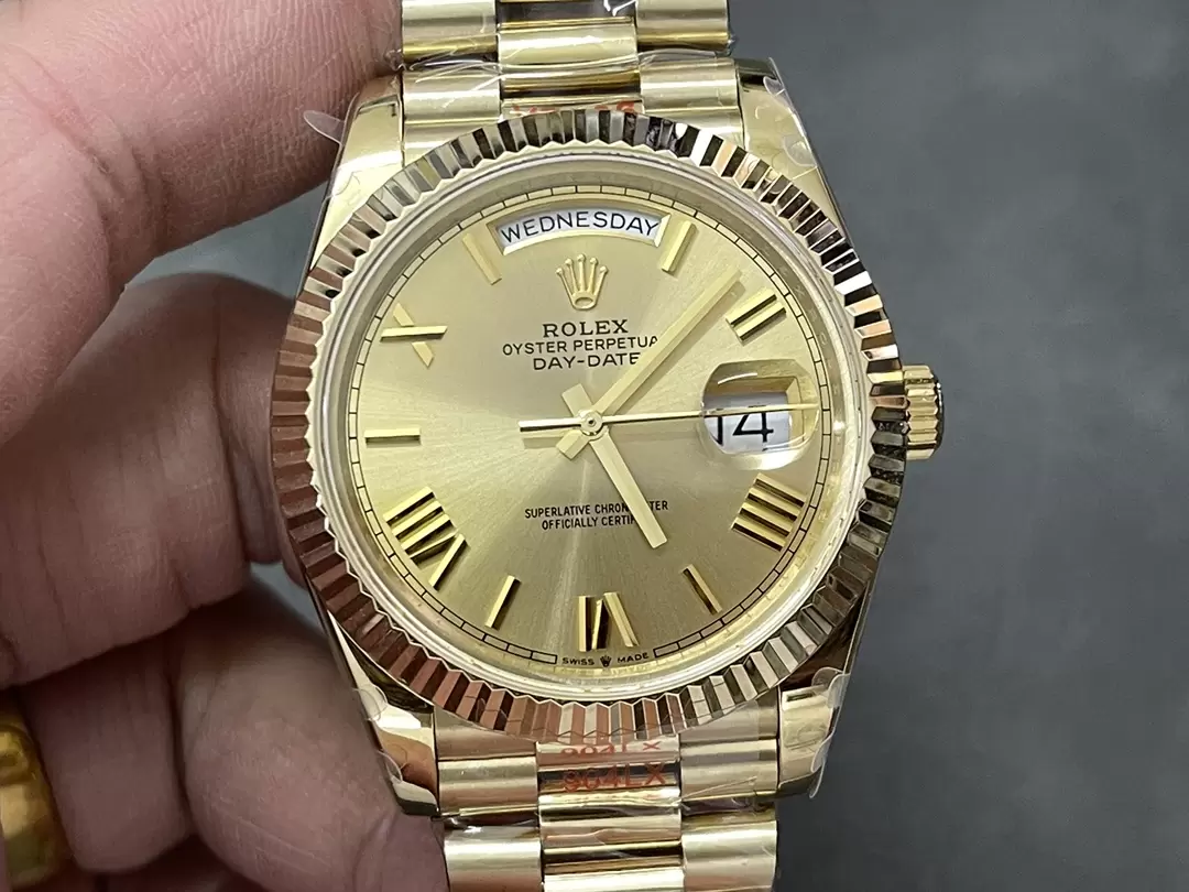 ROLEX DAY-DATE 228238 BEST REPLICA WATCHES GOLD DIAL GOLD PLATE ROMAN HOURS STEEL VONFRAM GM FACTORY 40MM
