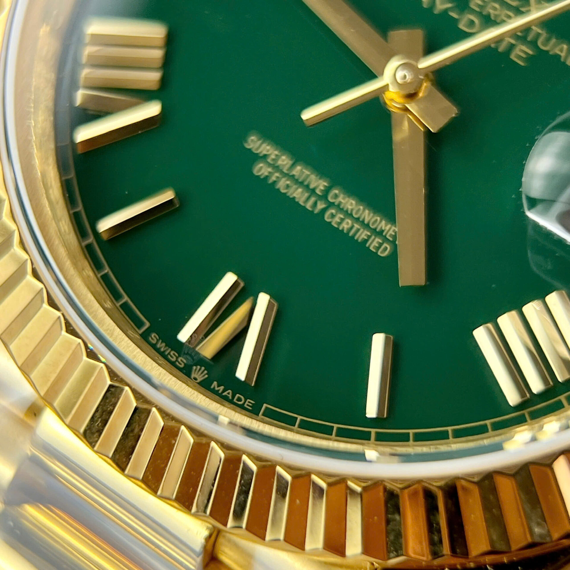 ROLEX DAY-DATE CUSTOM WATCH YELLOW WRAPPED GOLD GREEN DIAL GM FACTORY 40MM
