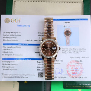 Đặt mua ROLEX DAY-DATE CUSTOM WATCHES WITH MOISSANITE BAGUETTE ROSE GOLD 40MM