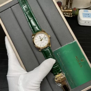 ROLEX DAY-DATE REPLICA WATCH GREEN LEATHER STRAP WHITE DIAL 36MM