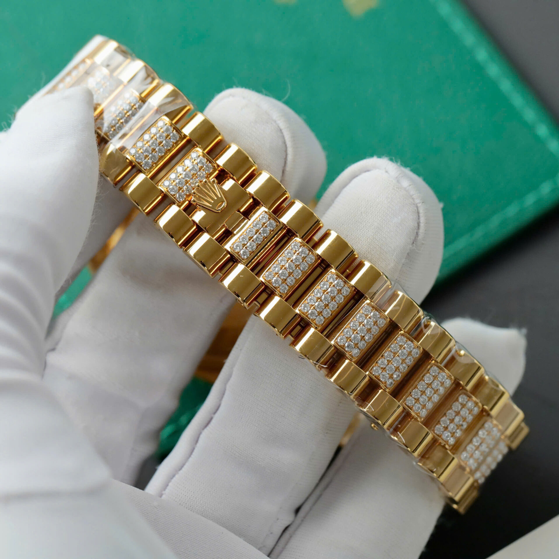 ROLEX DAY-DATE REPLICA WATCHES OMBRE DIAL WRAPPED GOLD MOISSANITE 36MM