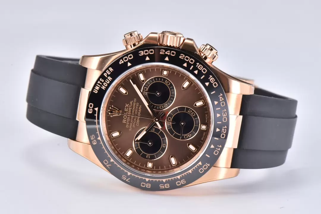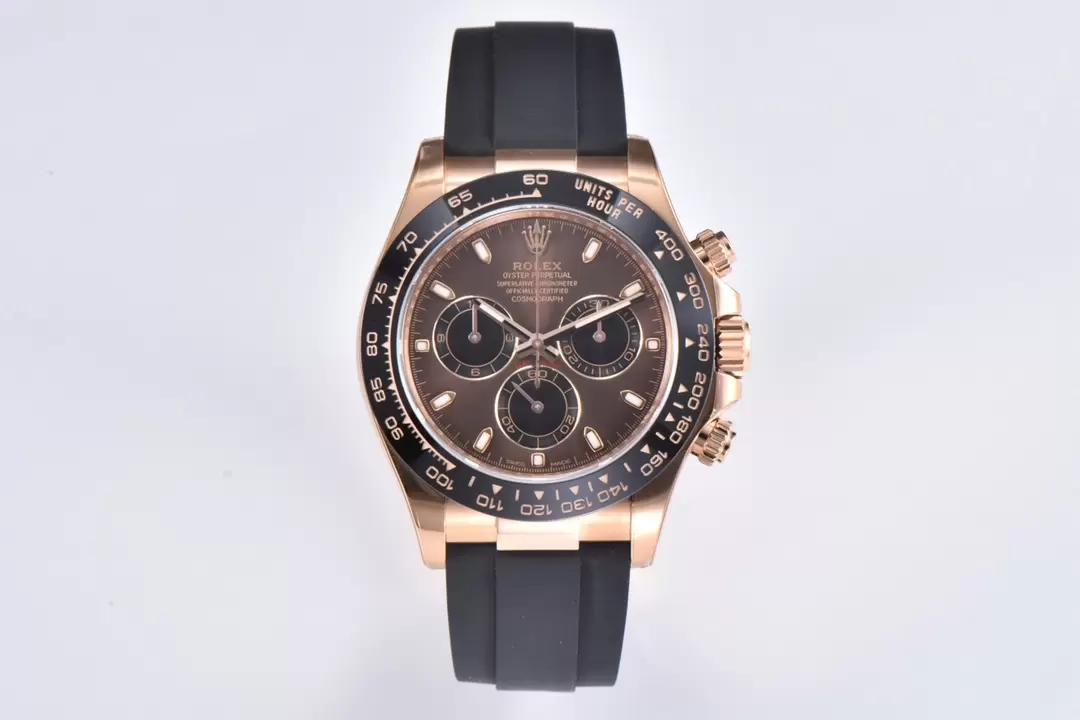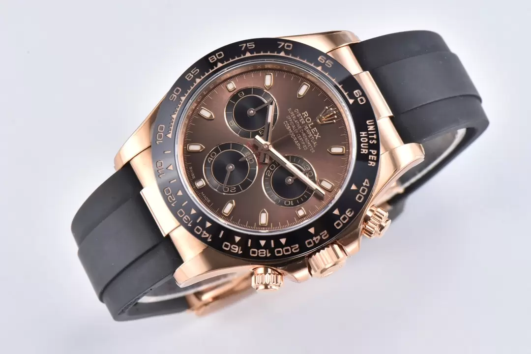 ROLEX DAYTONA BEST COPIES WATCHES CHOCOLATE DIAL INDEX HOURS RUBBER STRAP CLEAN FACTORY 40MM