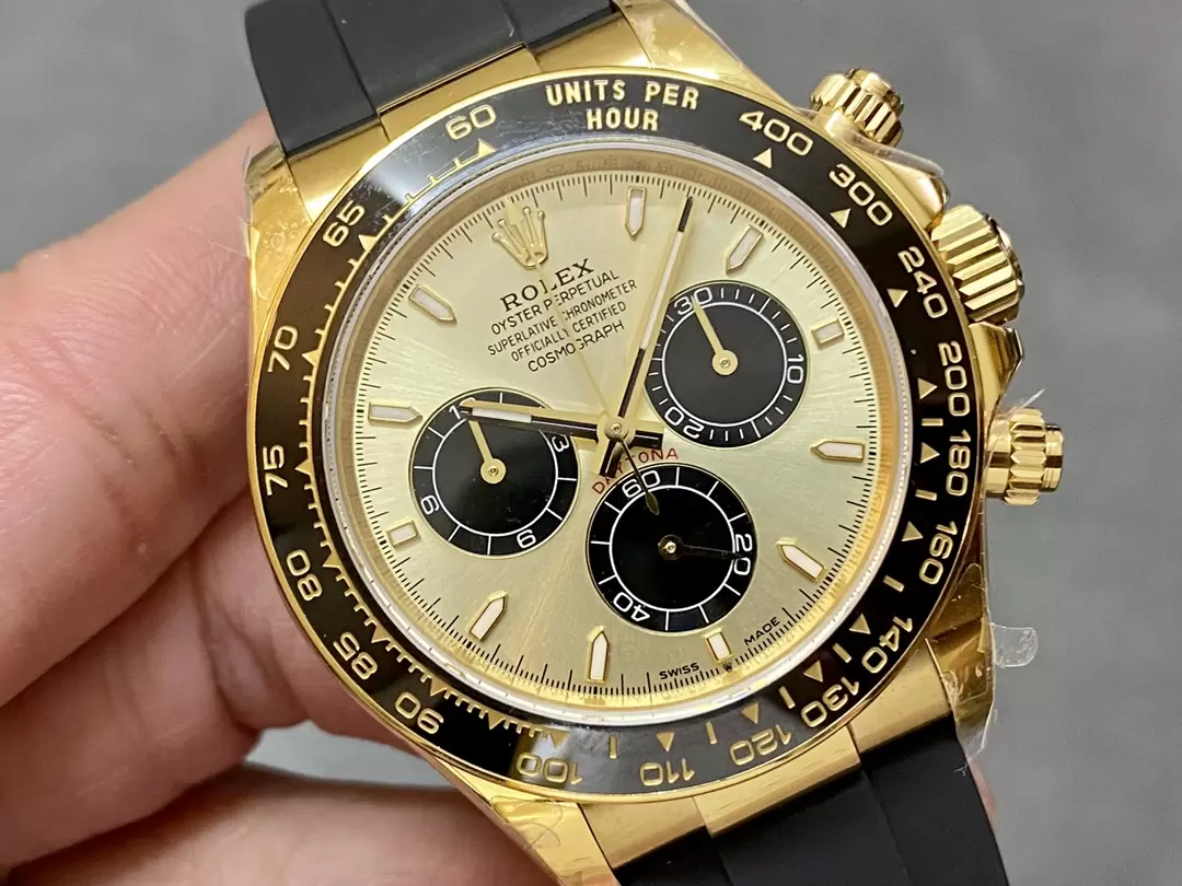 ROLEX DAYTONA COSMOGRAP 126518 IMITATION WATCHES GOLD PLATE GOLD CHAMPAGNE DIAL INDEX HOURS Q FACTORY 40MM